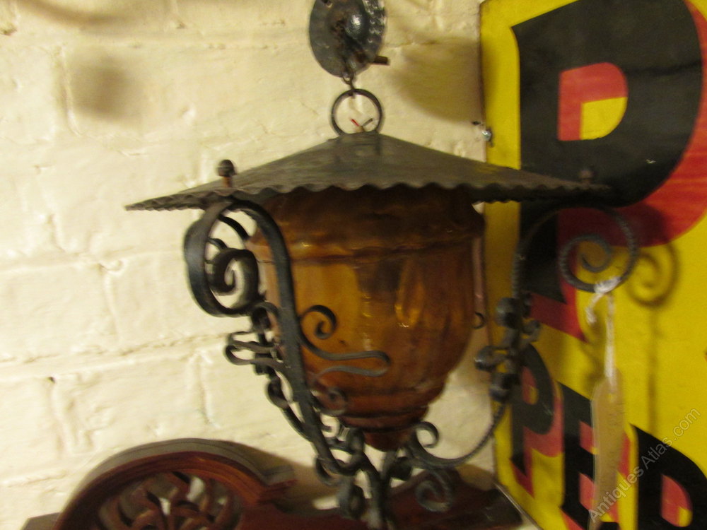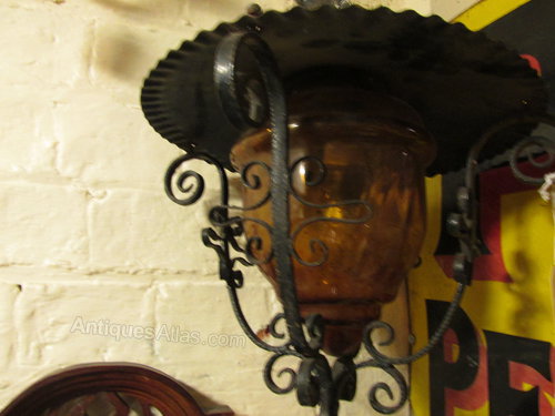 Vintage wrought iron French street lantern with amber glass bowl.In good untouched condition and easily rewired to suit a variety of locations/uses.