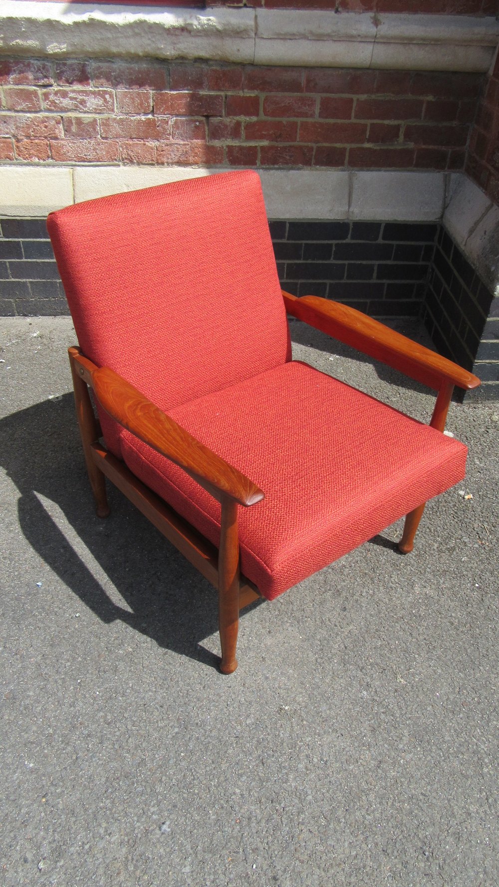 Vintage Teak Guy Rogers Manhatton Reclining Armchair dated below .80 cm high ,69 cm wide,69 cm deep