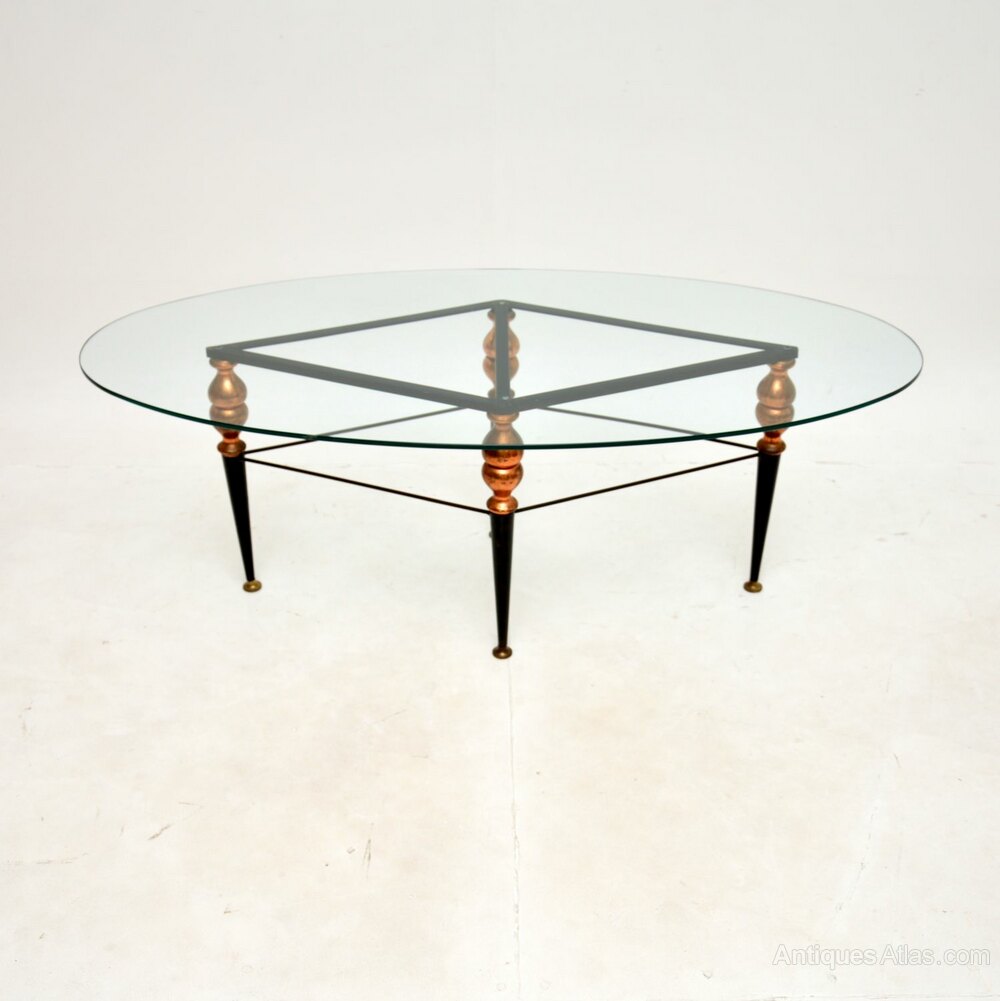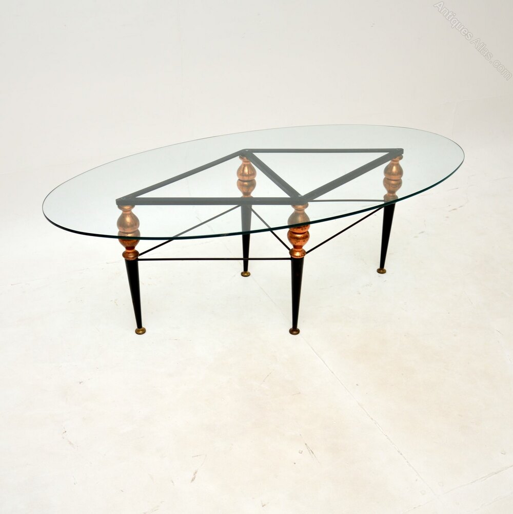 The quality is superb, the large clear toughened glass oval top sits on a beautifully designed base. The base is predominantly ebonised steel, with copper accents.