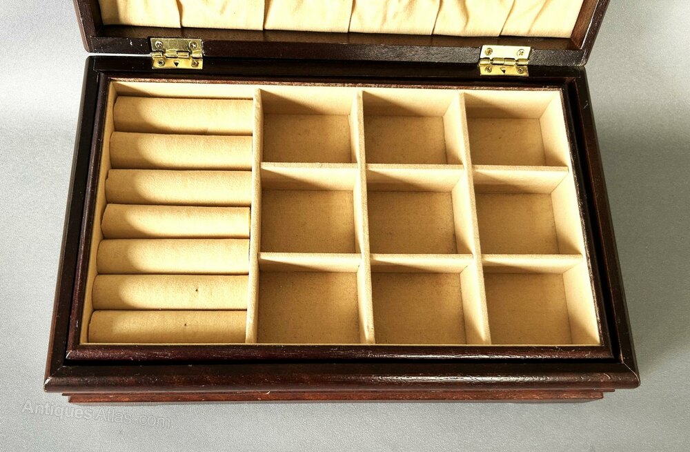 Victorian Marquetry Walnut Jewellery Box, Lockable