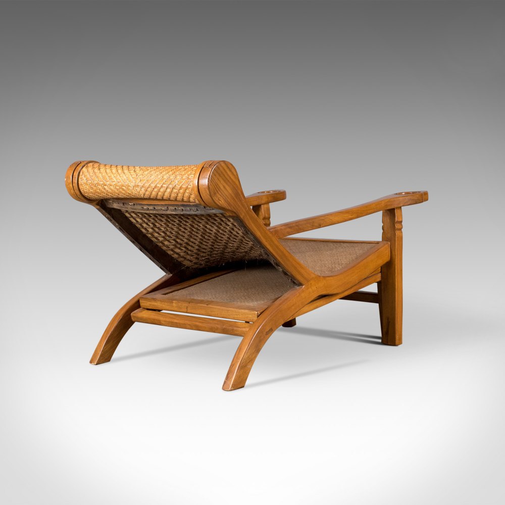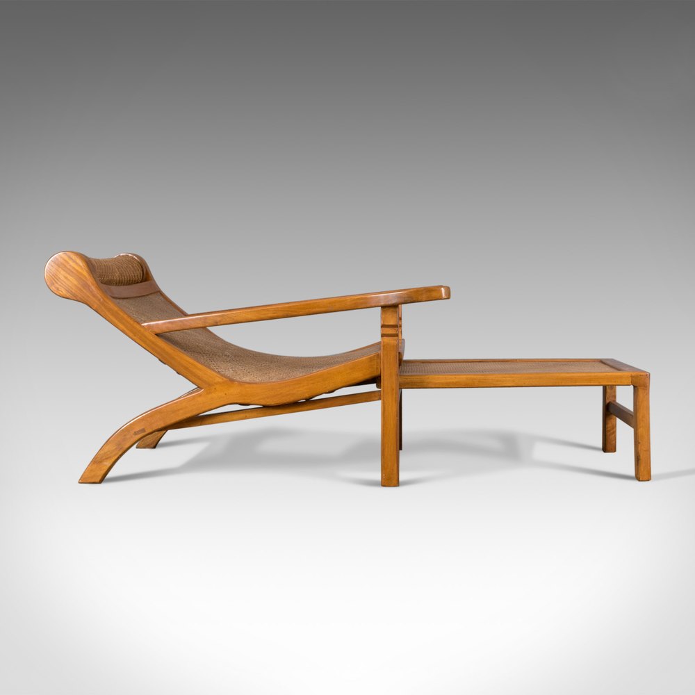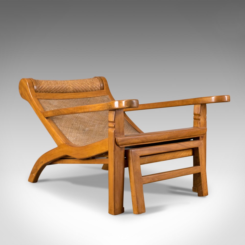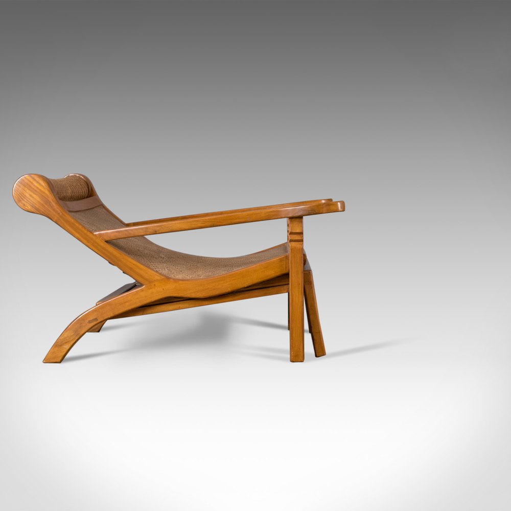 This is a vintage plantation chair, a hardwood steamer recliner from the mid 20th century, circa 1970.