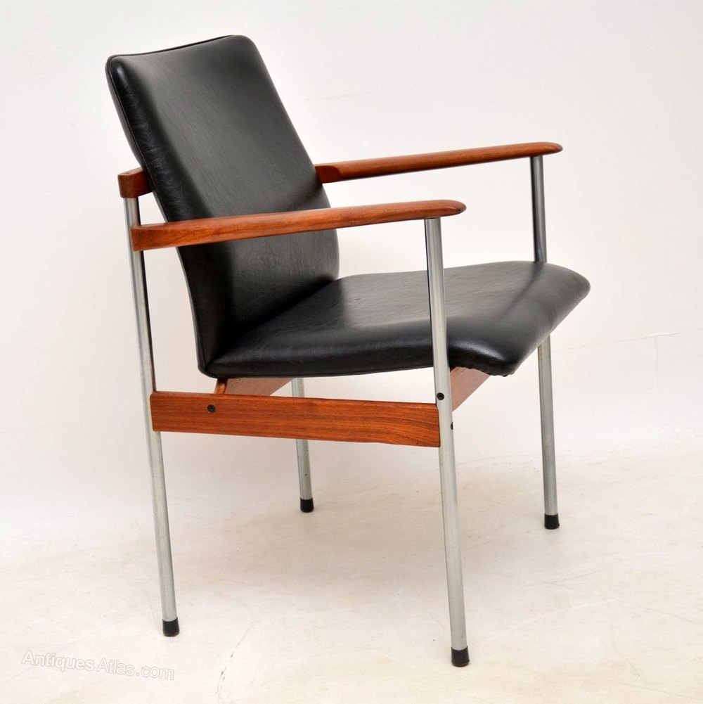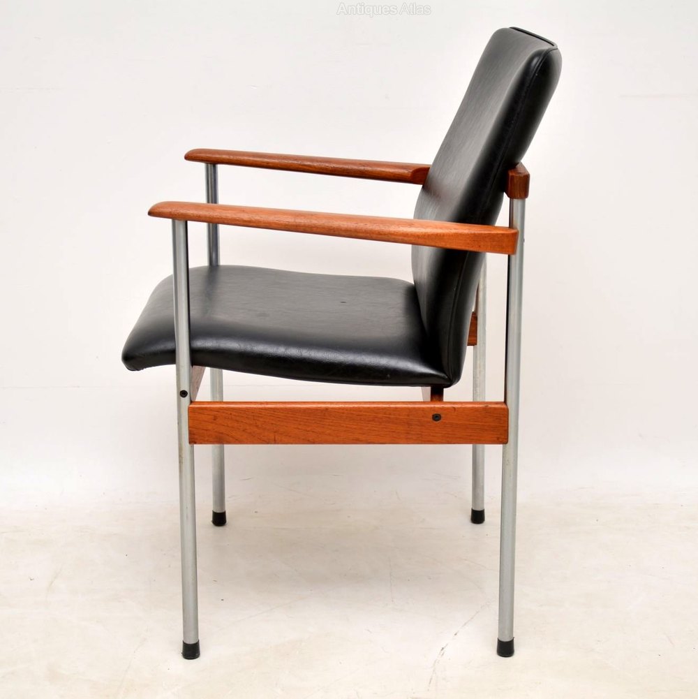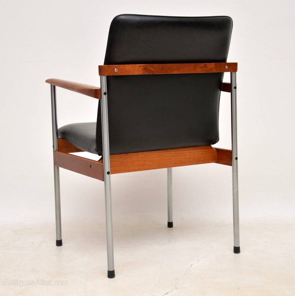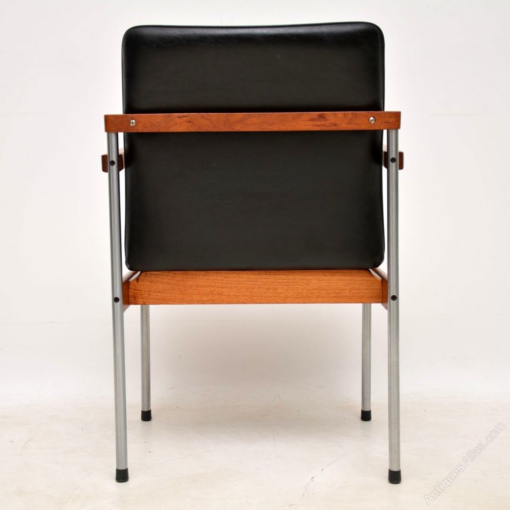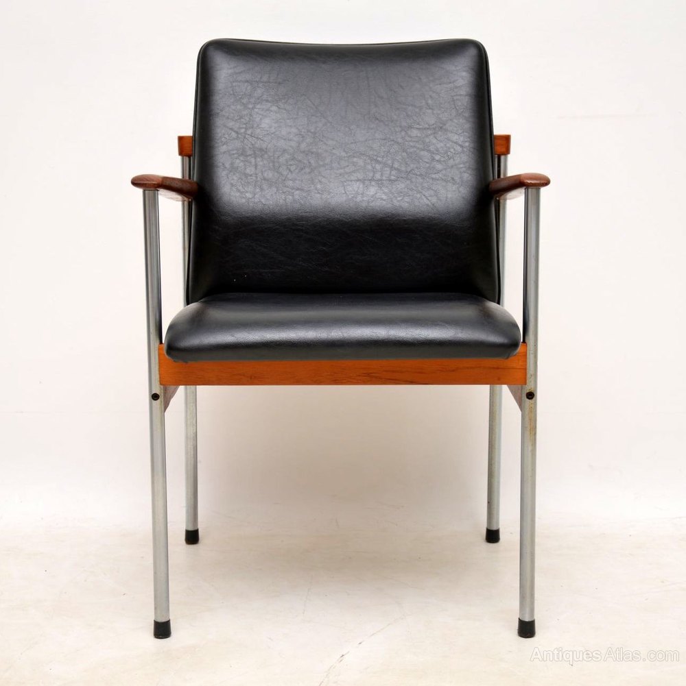 A beautifully styled and very comfortable vintage desk chair, in a combination of teak, chrome and black leatherette. This is in lovely original condition, it’s very clean, sturdy and sound. There is just one tiny perforation in the vinyl on the seat, seen in the images.