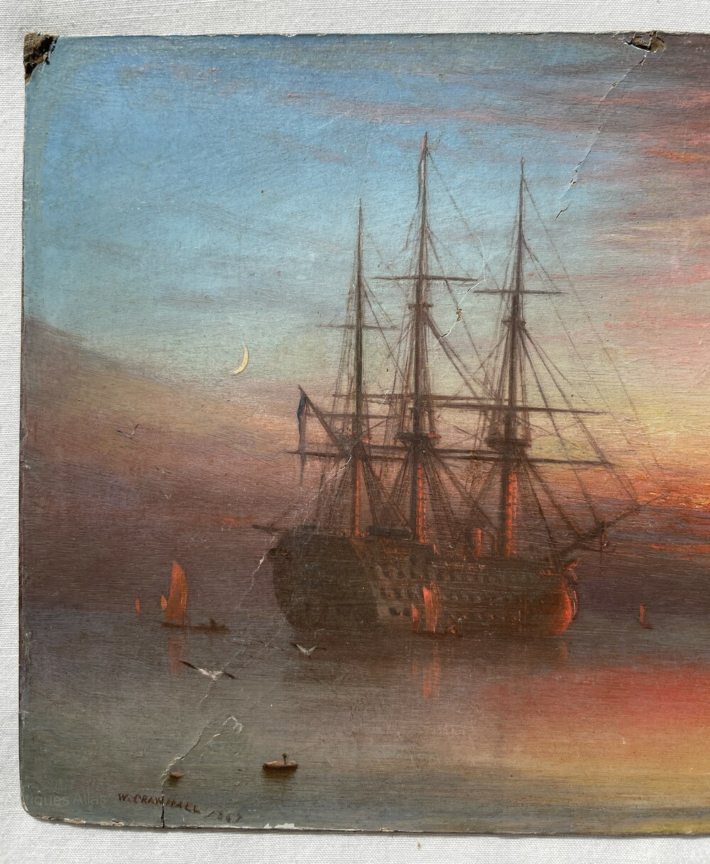 W Crawhall – Oil on Board – Battle Ship 1868