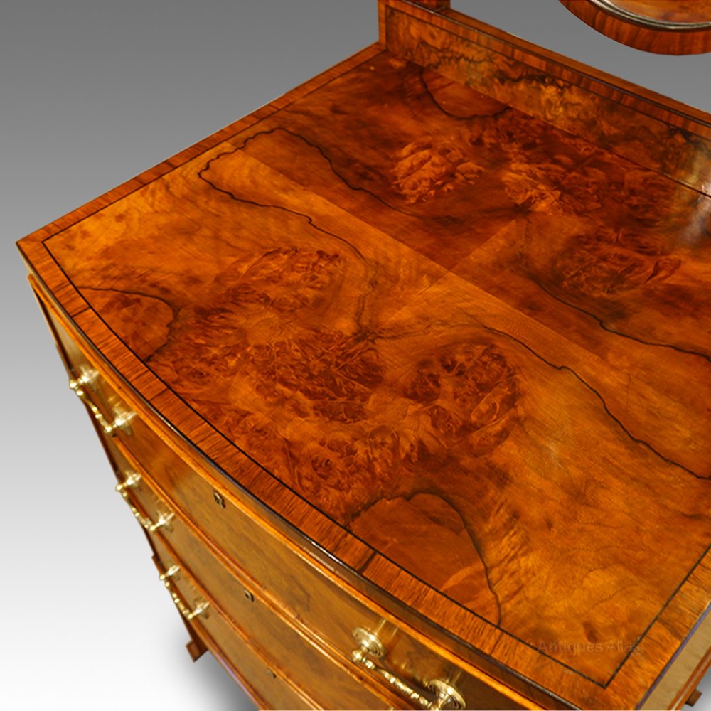 Walnut Bow Front Dressing Chest