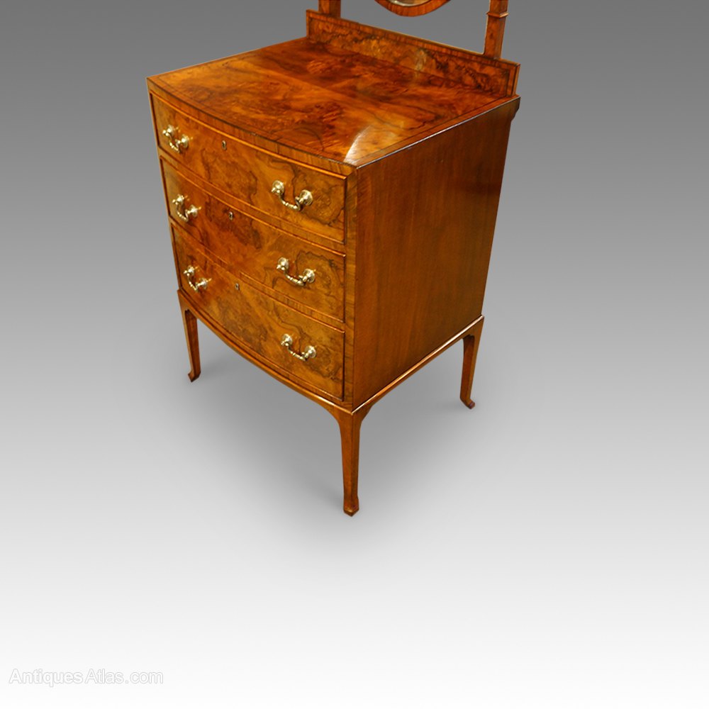 This Walnut bow front dressing chest was made circa 1920.