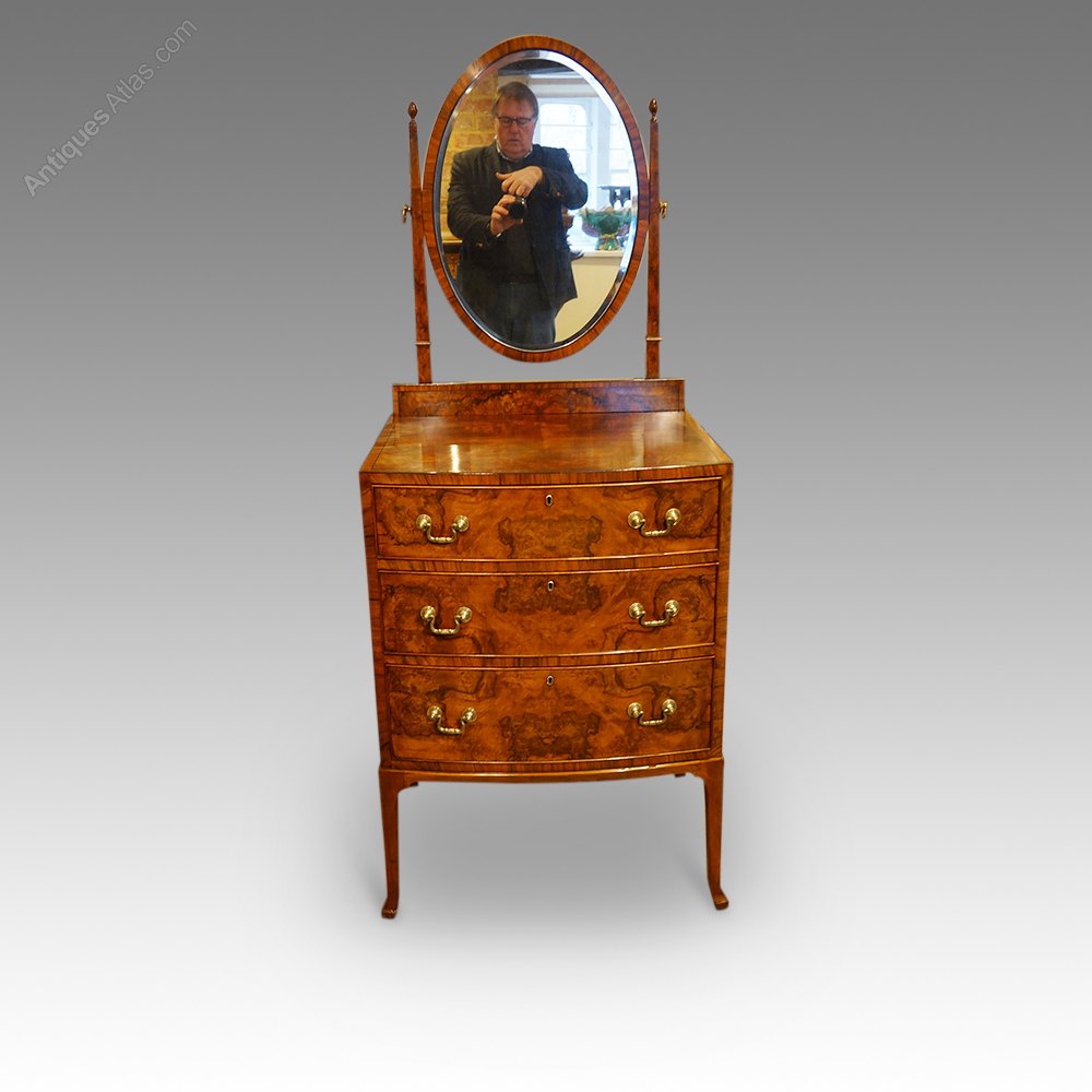 Walnut bow front dressing chest
