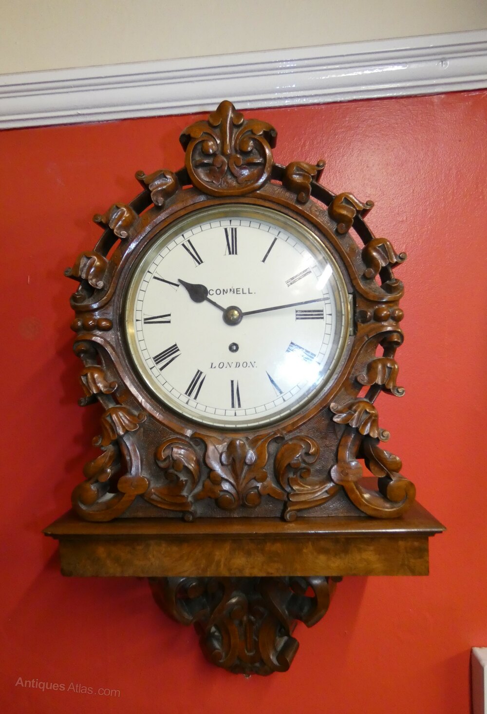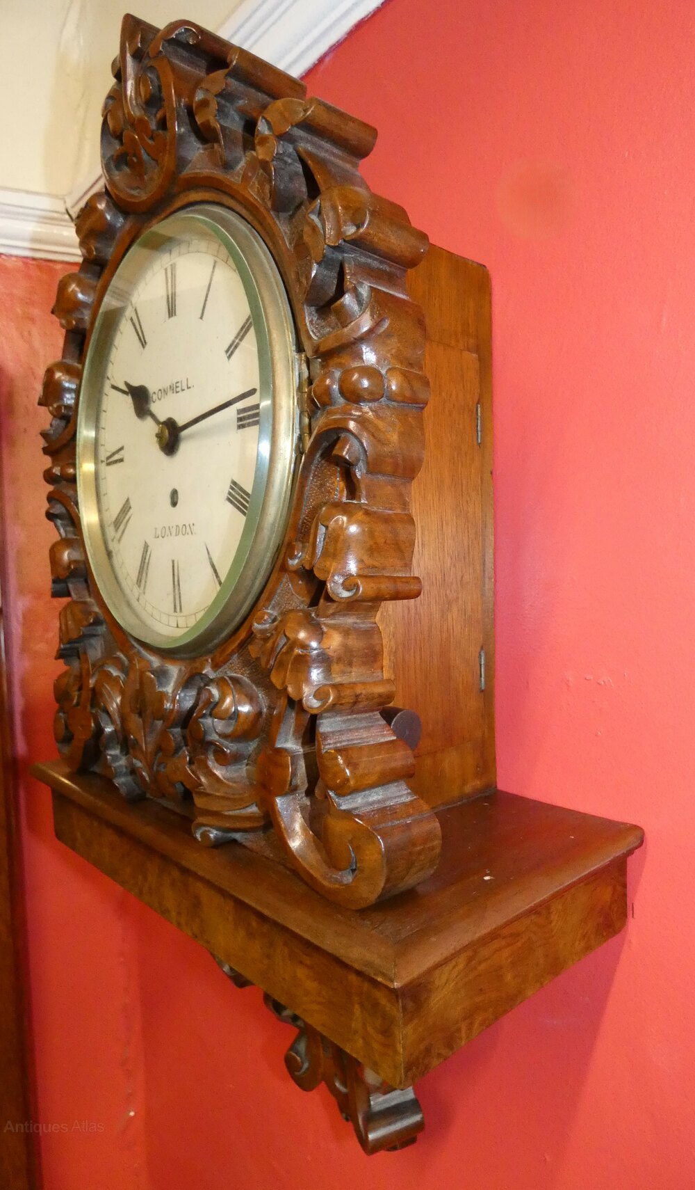 The eight day, single fusee movement with 8" painted dial in a wonderfully ornate carved foliate case with an integral bracket.