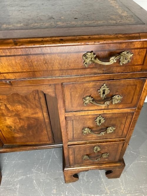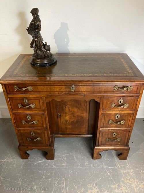Antique Burr Walnut Leather Top Desk