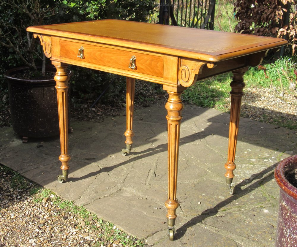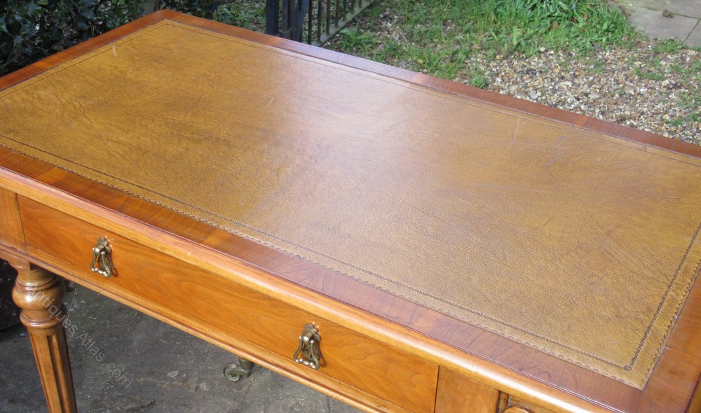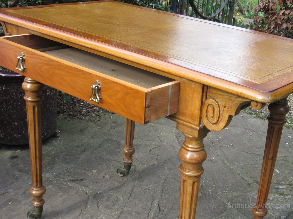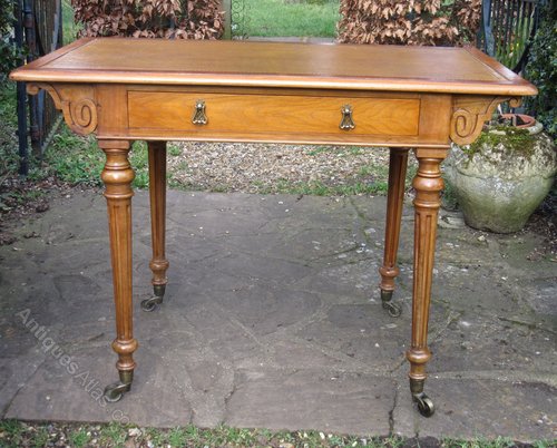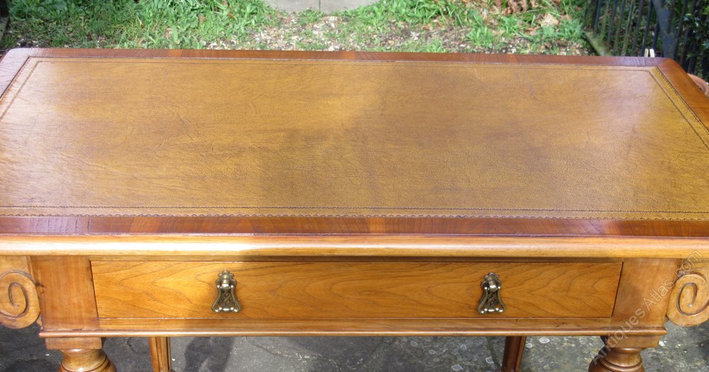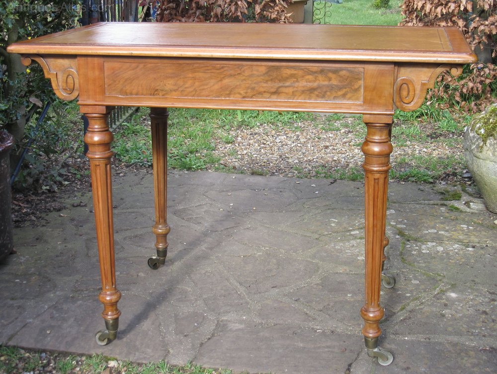 This very elegant Antique Walnut Writing Table, with stamped Cope & Collinson Castors and Tan Leather inset, dates from circa 1840.