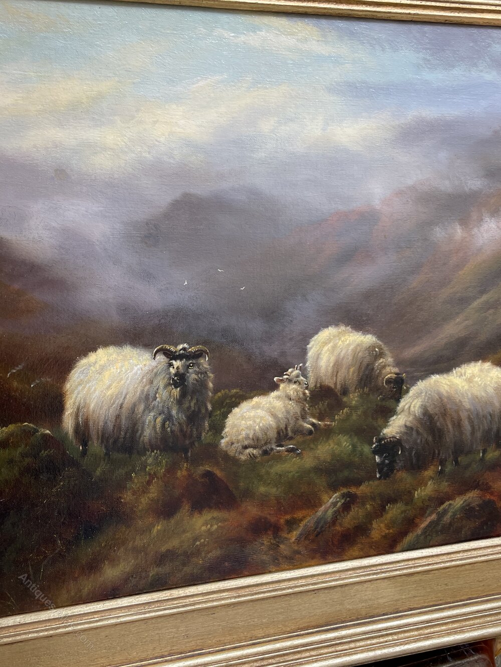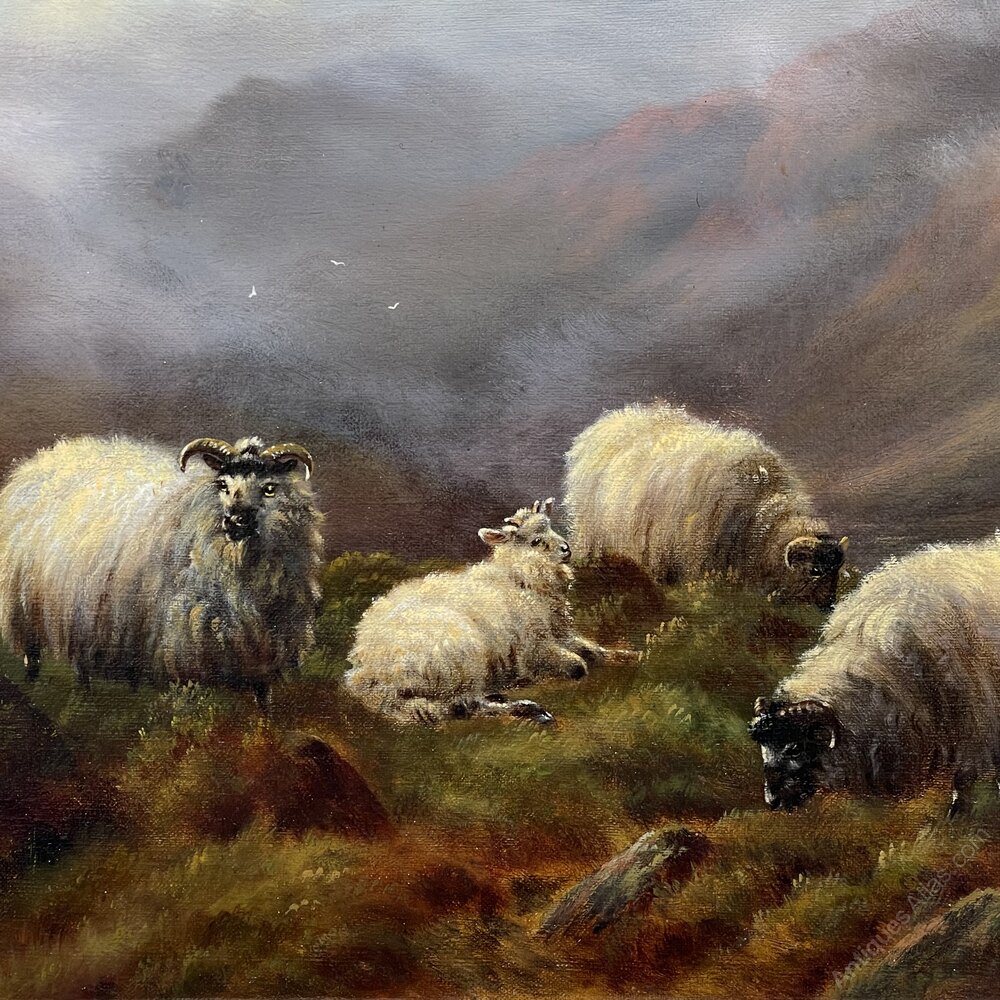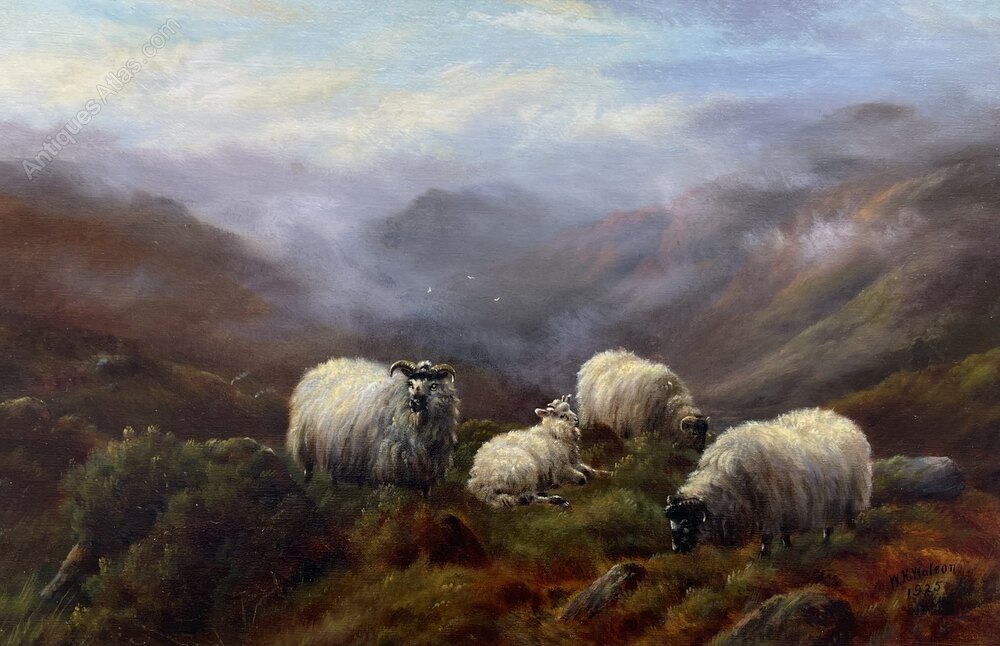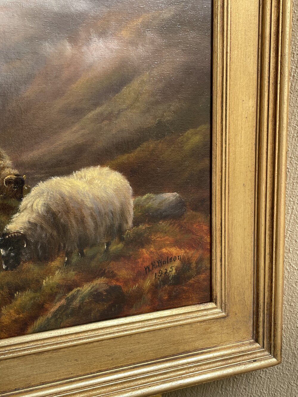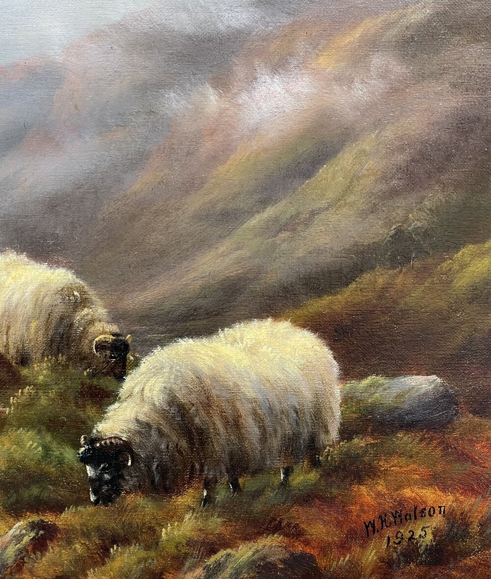 A very pleasant and atmospheric highland sheep landscape by William H Watson (1886-1964), oil on canvas, signed lower right and dated 1925.