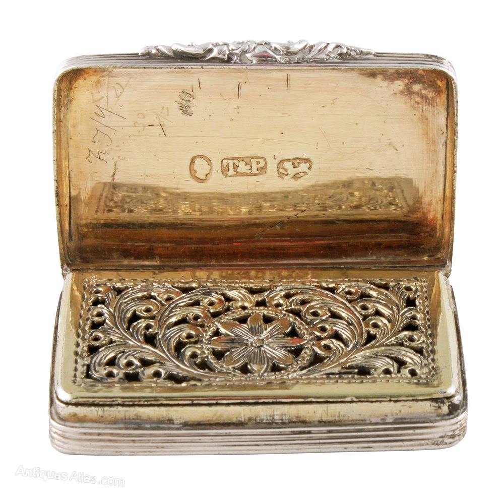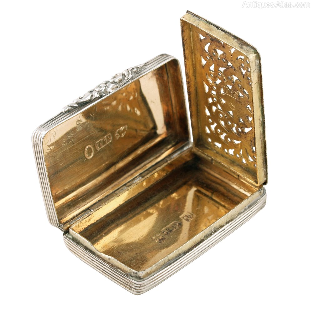 The vinaigrette has the assay marks for Birmingham, the year 1837 and the maker's mark for Taylor & Perry.