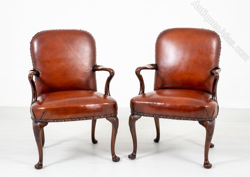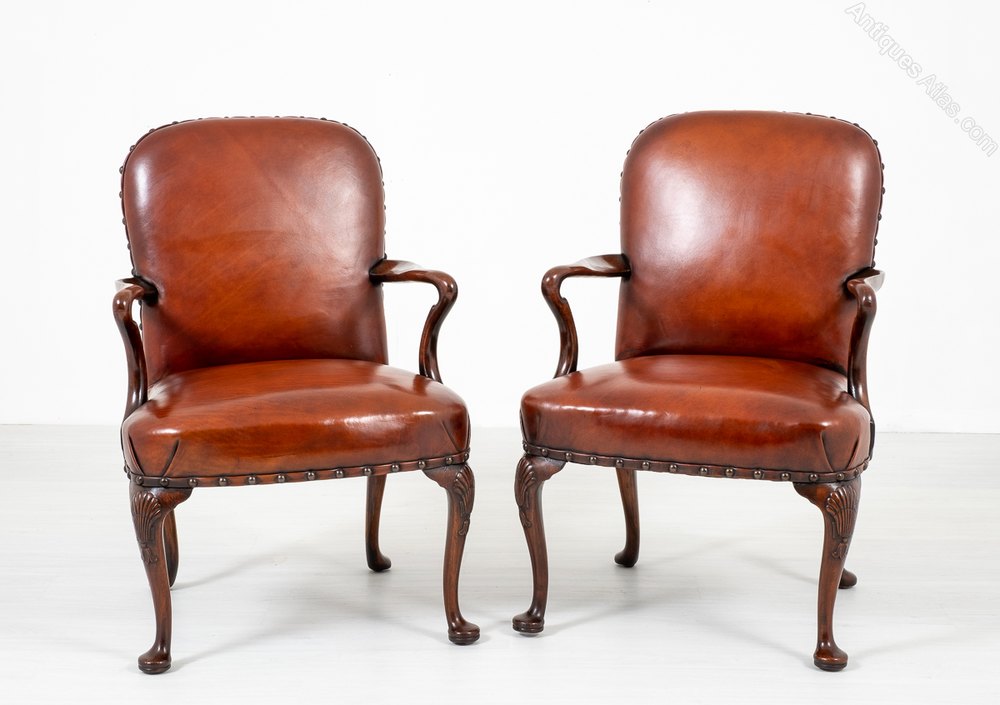 Wonderful Pair of Queen Anne Walnut and Leather Op