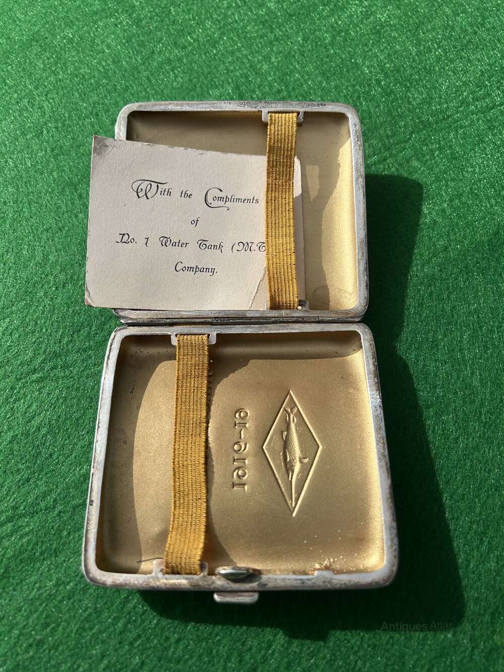 An interesting WW1 complimentary cigarette case presented by No1 water Tank Motor Transport company for service in France and Belgium in 1916 to 1919. This company was part of the Army Service Corps and was responsible for delivering water to Troops at the front.