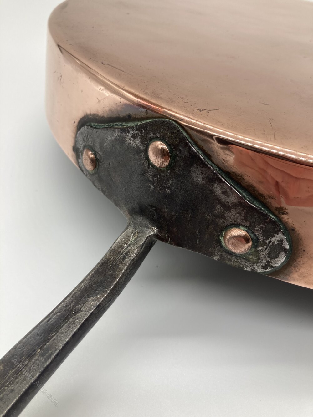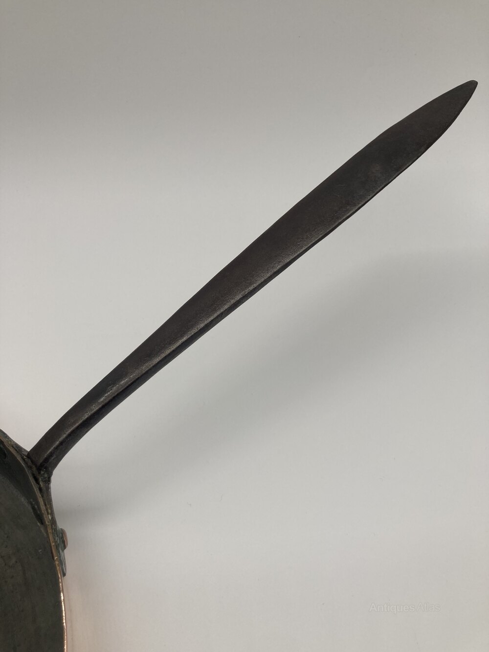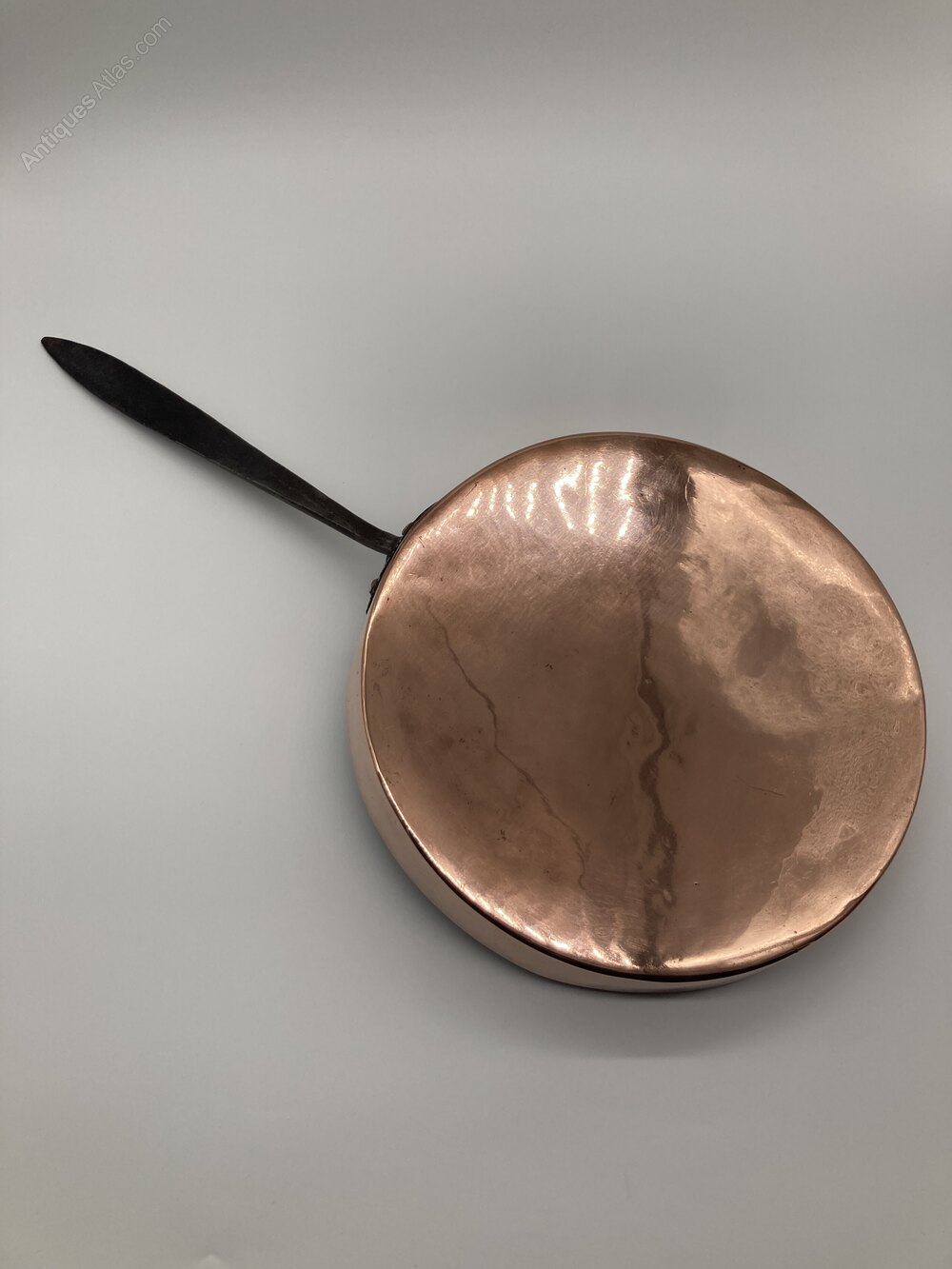 A mid 19th Century copper frying pan with long iron handleDateMid 19th Century :