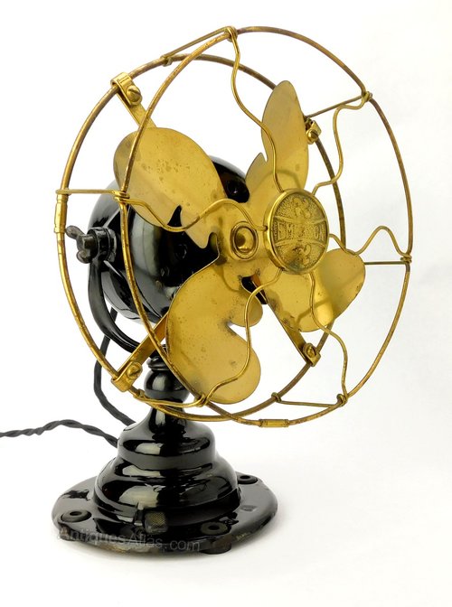 Circa 1914 8" Emerson Type 19644 Desk Fan. Small Cast Iron Body Emerson's Have Gained A Great Following Among The Collector Community. Solid, Study And Truly Built To Lase These Early Emerson's Make A Perfect "Desk" Fan. This Example Contains All Its Original Components And Finish. All Cast Iron Pieces Have Been Cleaned And Waxed To Reveal The Original Shine. Headwire And Power Cord Have Been Upgraded Using Our Superior OTR+W. Fan Operates Perfectly On All 3 Speeds. Brass Has Original Patina Complimented By Areas Still Sealed With Original Lacquer. Beautiful Surviving Example Of A Highly Collectible Fan. Excellent For Daily Use!!Date1910s :