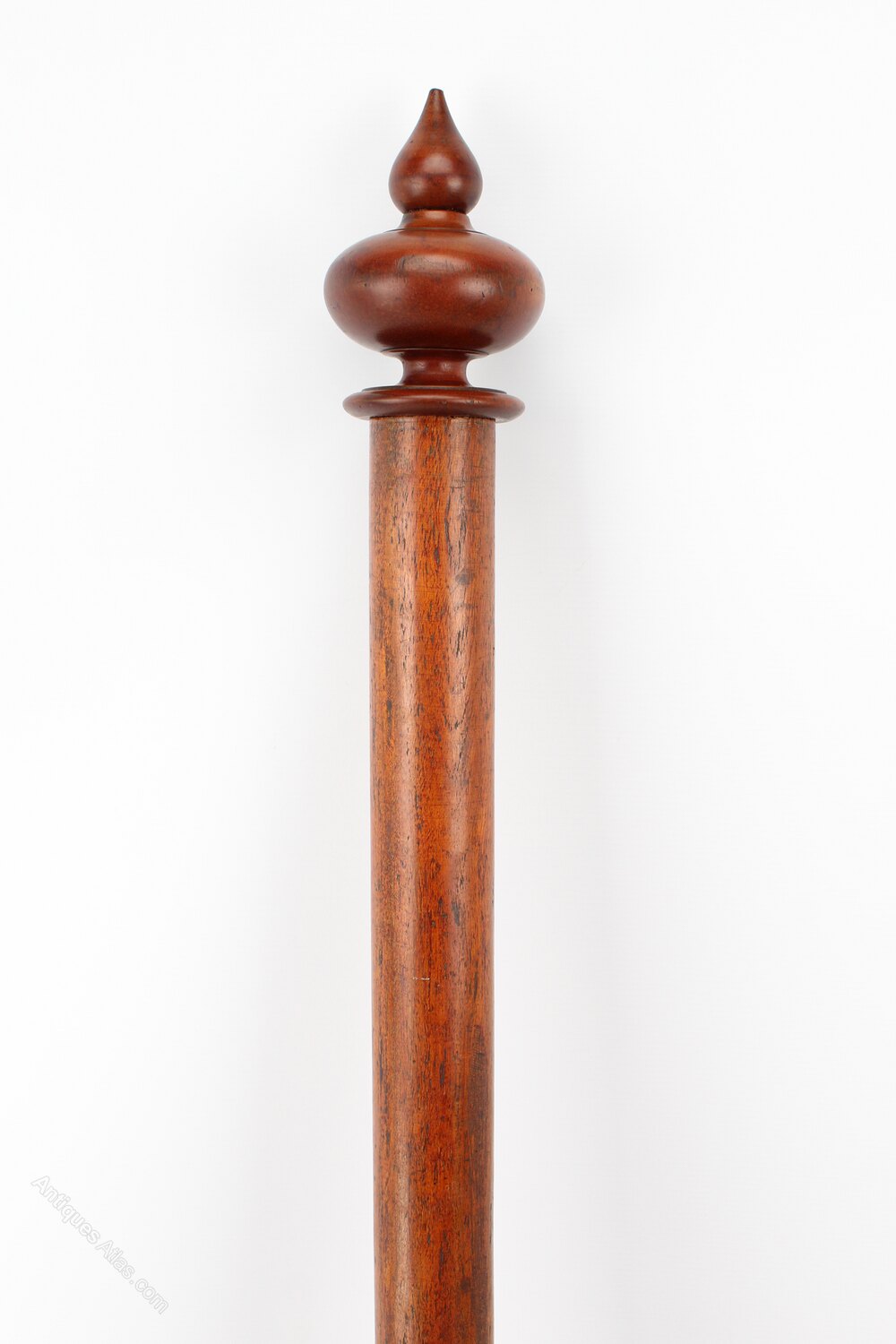 General wear and marks commensurate with age. It has some old worms holes to both the finial and pole which have been filled with wax. Rings included. No brackets.