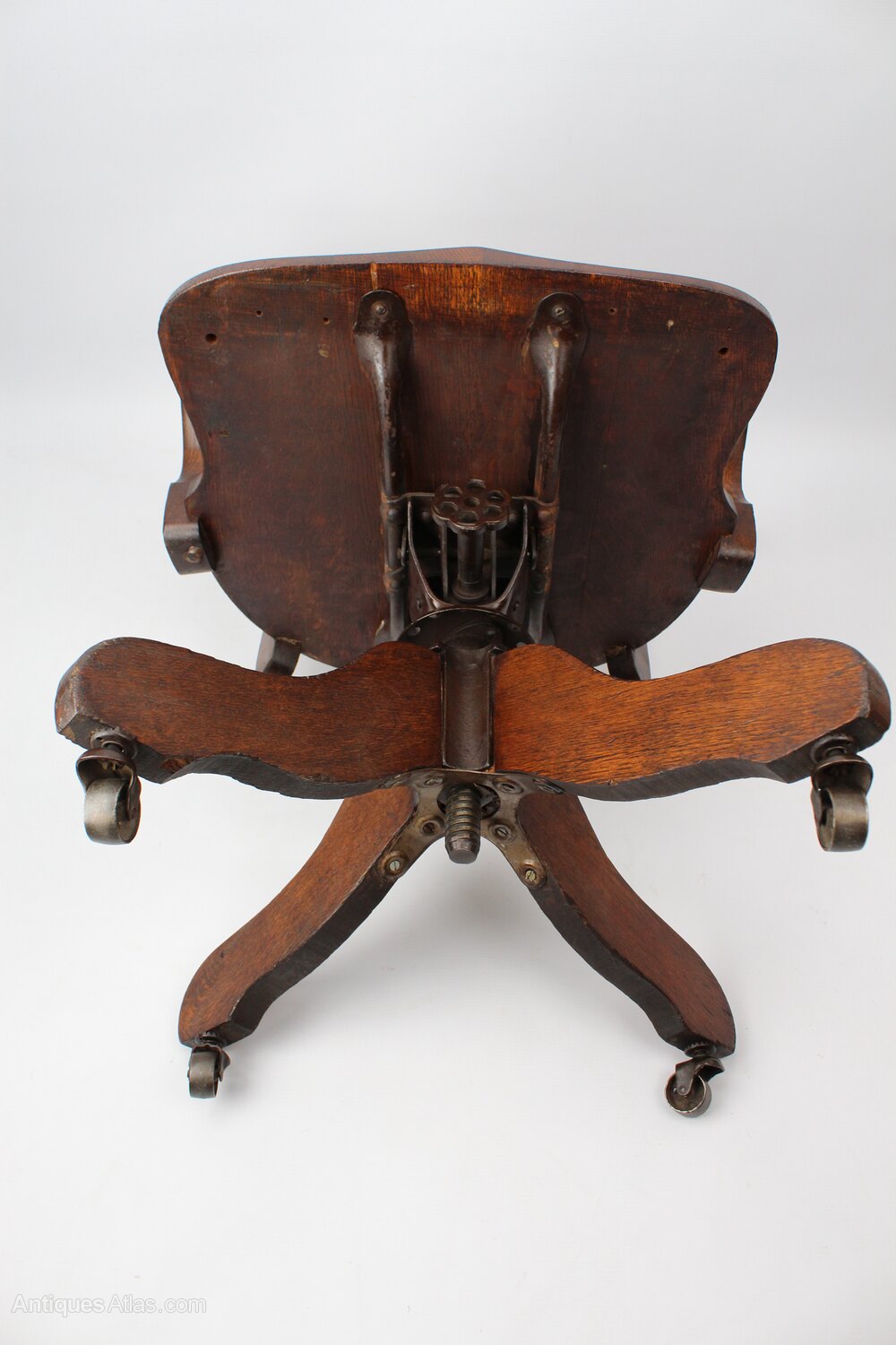 Edwardian Oak Swivel Desk Chair / Office Chair
