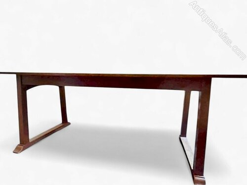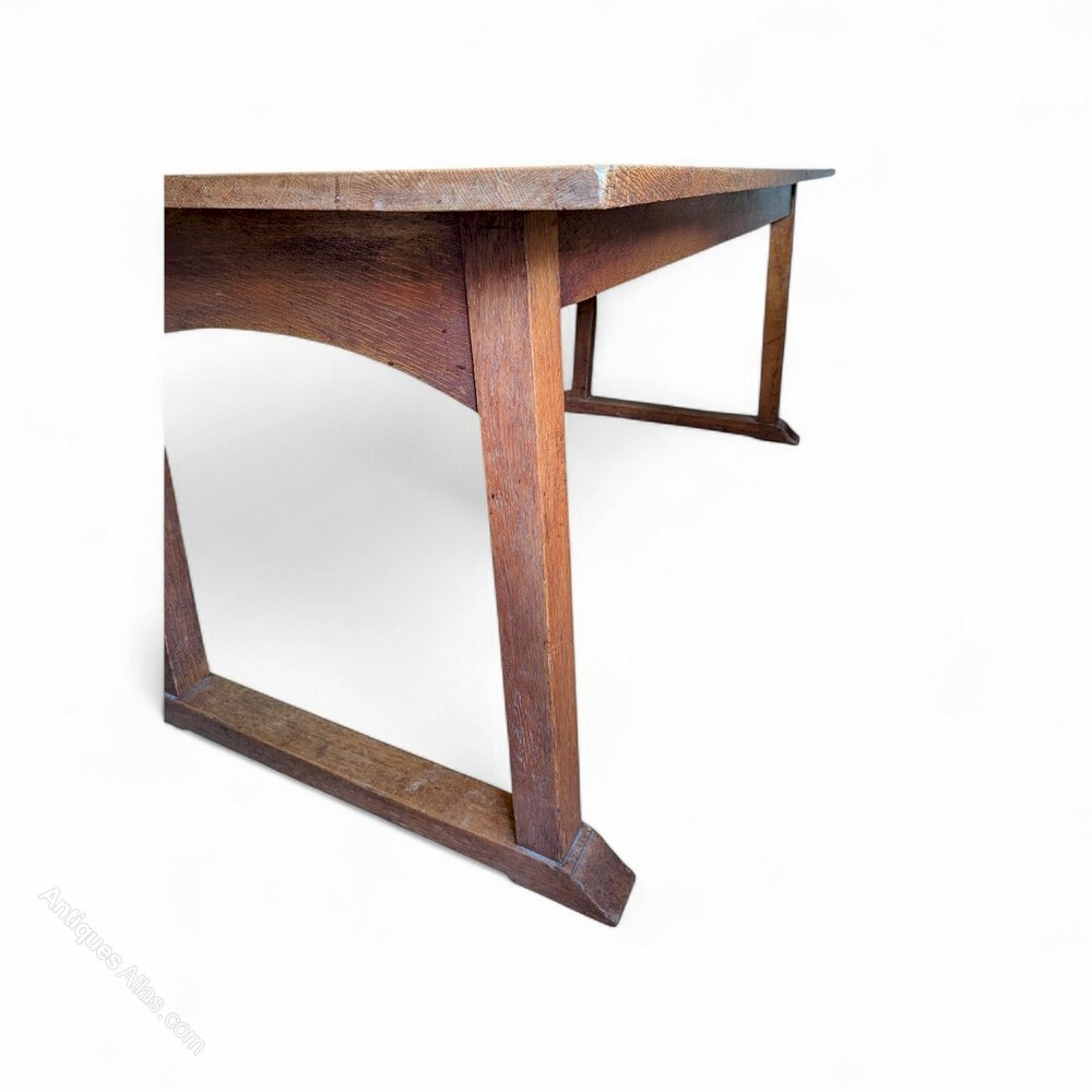 Good arts and crafts refectory dining table in oak designed by Ambrose Heal as part of the Letchworth range . This is the larger version which seats 8 comfortably and is in very good original condition having been lightly cleaned and wax polished . Features the Heals label underneath .W.30"/76cm x L.72"/183cm x H.28"/71cm