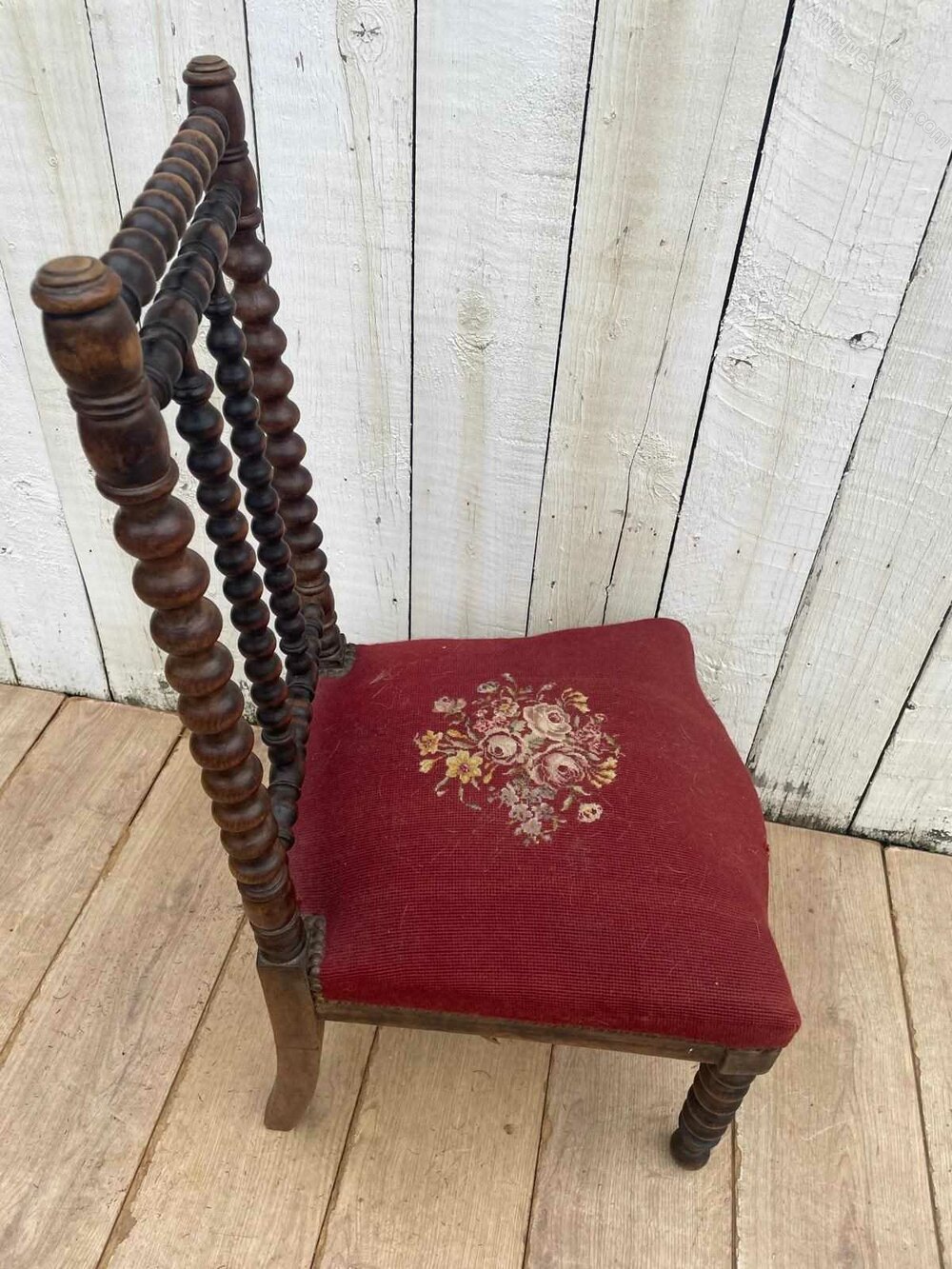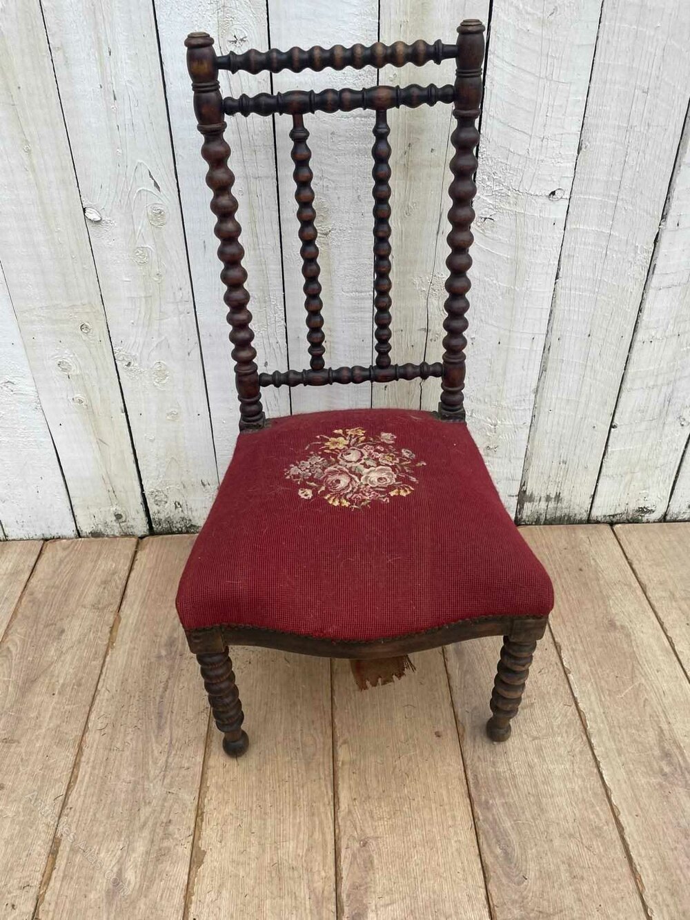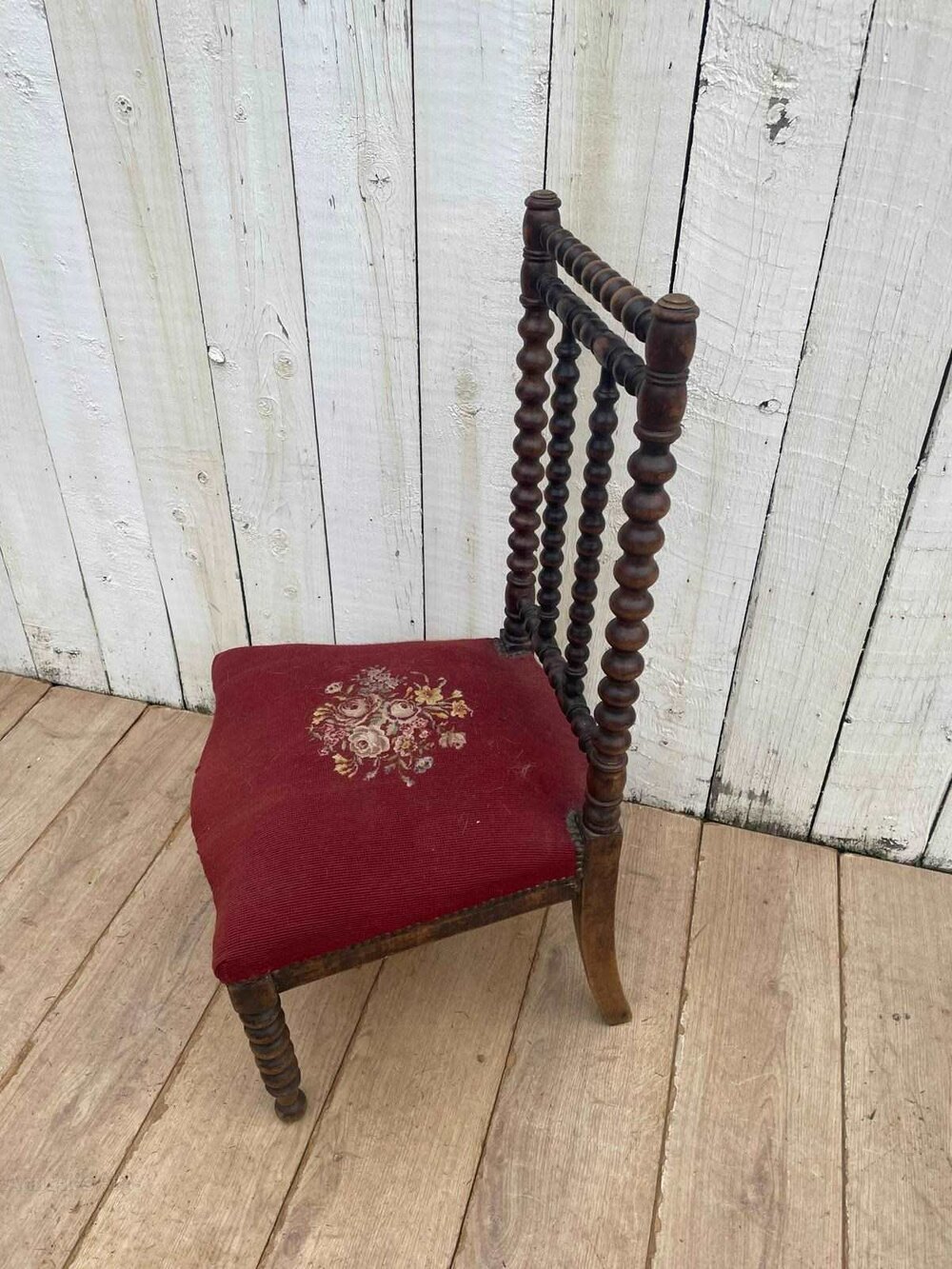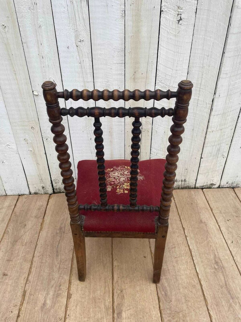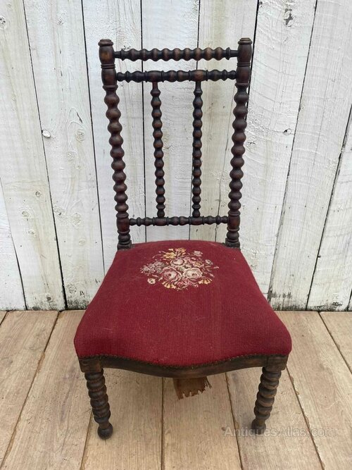 A Napoleon 111 prie-dieu chair.It has distinctive bobbin turned detail on backrest and legs.
