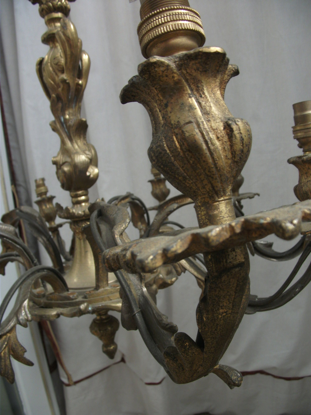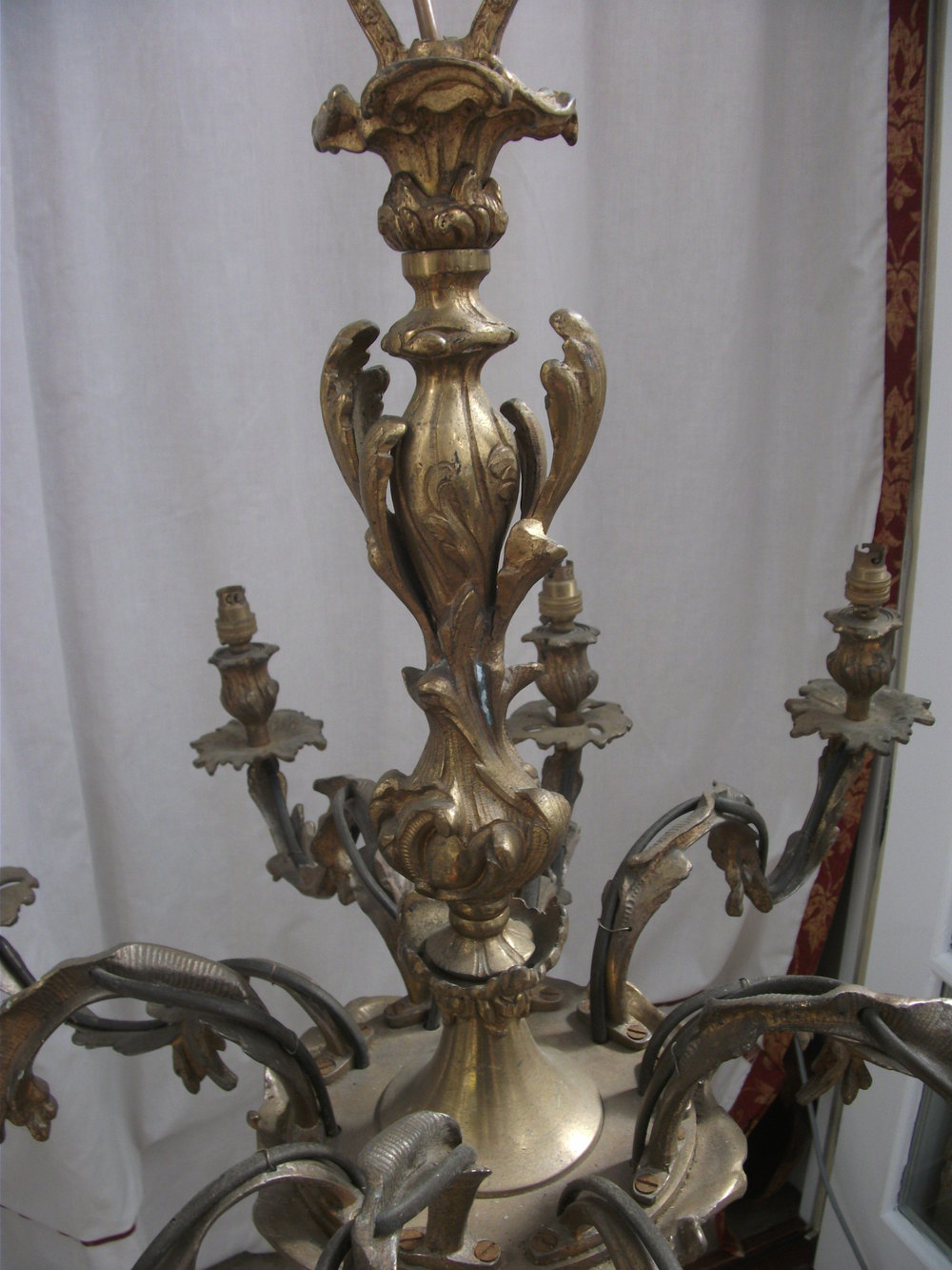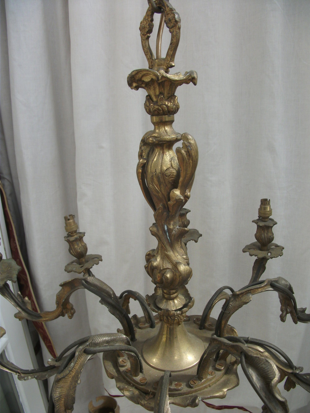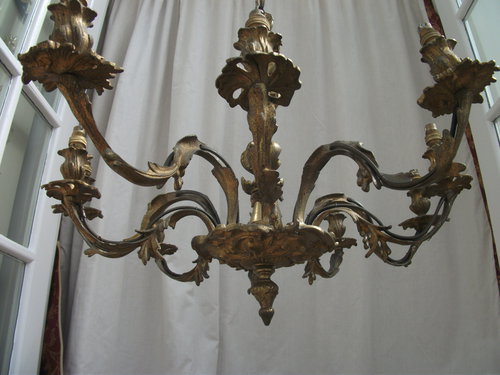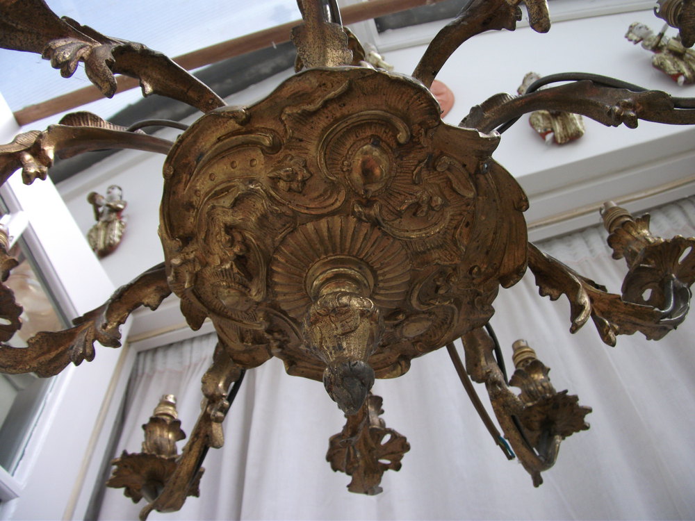 Superb Quality French 10 Arm Louis XV Style Chandelier, Heavy Ormolu Casting.Original ceiling rose.At present in an as is condition, requires rewiring & if desired a complete polish.