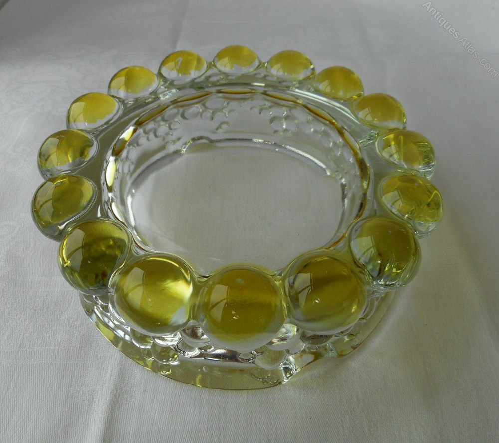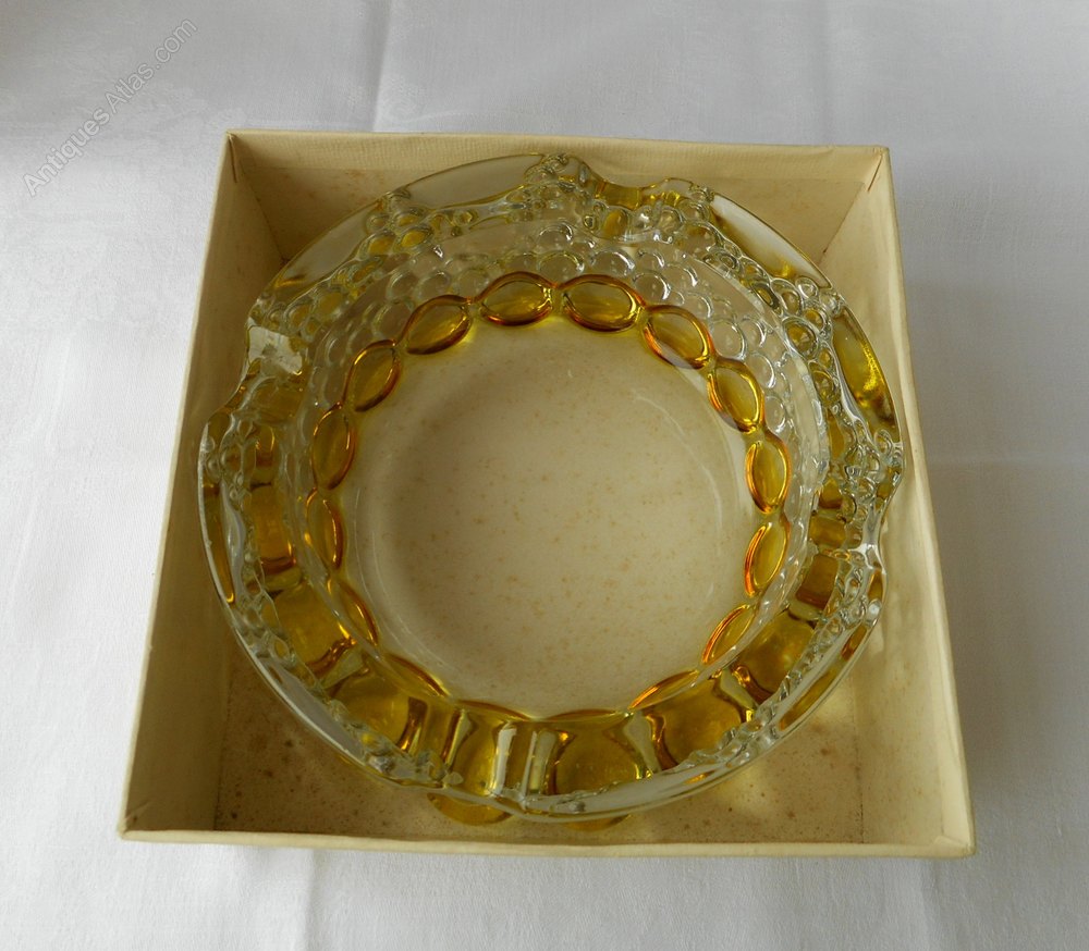 This heavy Ashtray has the bolero bubbles in amber colour.