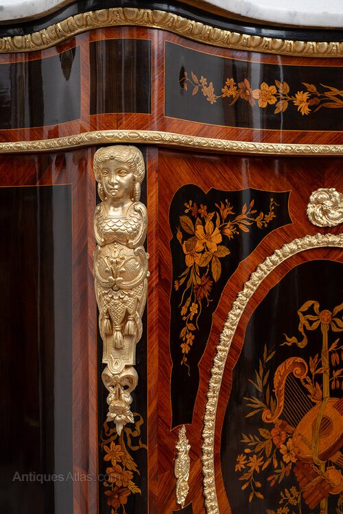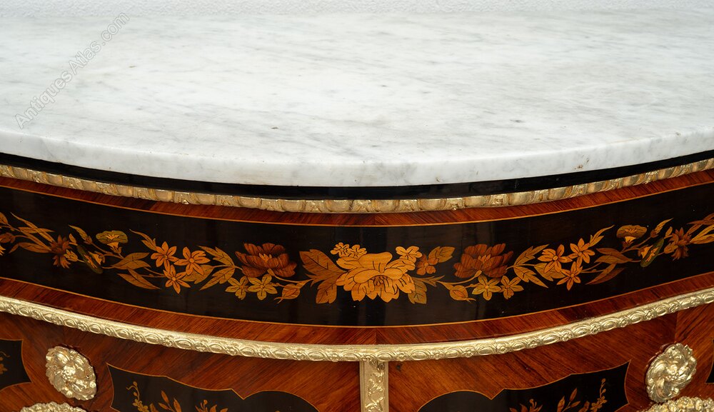 The two projecting corners are embellished with expertly chiseled gilded bronze elements.
