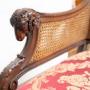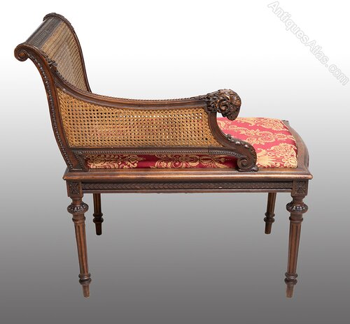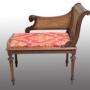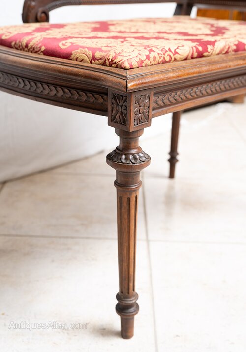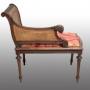 Description: Antique French Napoleon III bench in solid walnut, dating back to the second half of the 19th century.The back and sides are finely carved with a leaf motif and terminate in a ram's head.