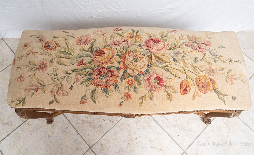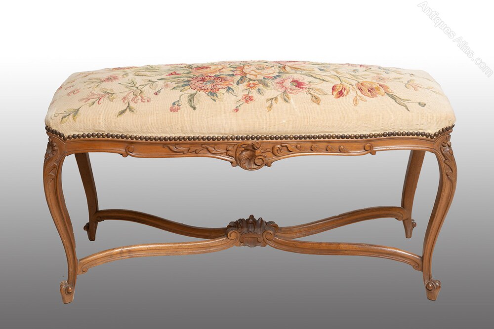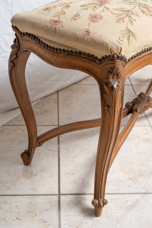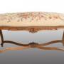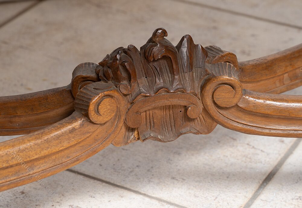 The four legs have the classic cabriolet shape, connected by a mixed-linear crosspiece with a central frieze.
