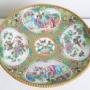 The surface is decorated in the typical Imari reserve pattern, with an emerald green background finely adorned with stylized floral motifs and butterflies.