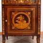 The sides and top are also inlaid with figurative scenes and floral decorations, a testament to the fine craftsmanship of this piece of furniture, designed to be both functional and representative.