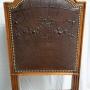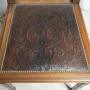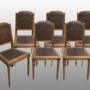 Description: A set of six antique solid walnut chairs from the second half of the 19th century.The mixtilinear backrest is surrounded by a shaped wooden frame finished with a beak-shaped finish, inside which we find the original leather.