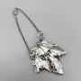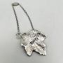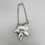 The decanter label is 15.8cm / 6.2ins from the top of the chain to the bottom of the leaf, 5.8cm / 2.3ins wide and weighs 51.5g / 1.8oz.