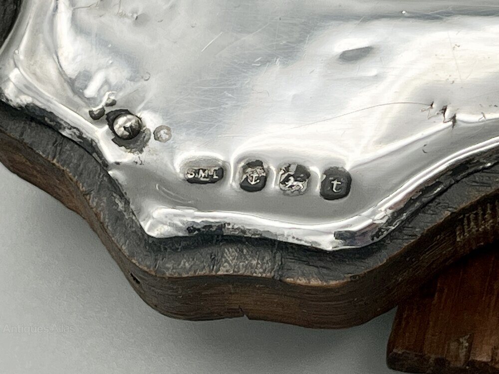 The hallmarks, in the bottom left hand corner, are nice and clear to read. They show the lion passant for Sterling Silver, the anchor assay mark for Birmingham, the date letter t for 1918 and the S.M.L makers' mark for Samuel M. Levi.
