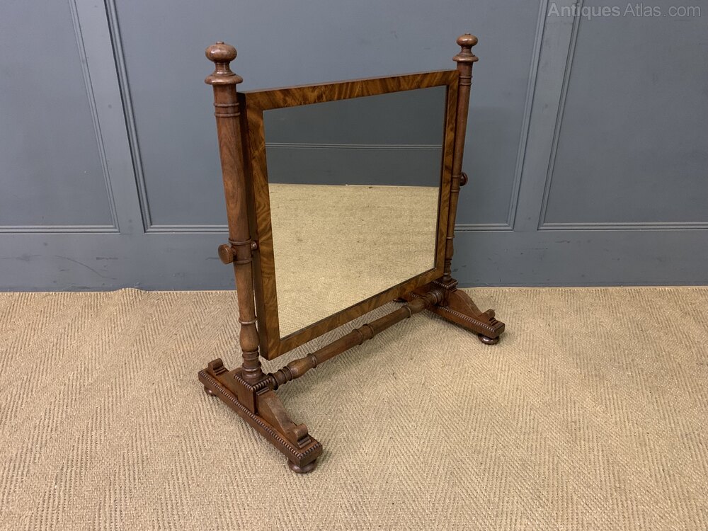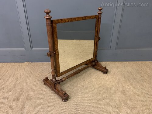 An excellent George IV period mahogany toilet mirror attributed to Gillows of Lancaster. Very well constructed in solid mahogany and mahogany veneers. The rectangular mirror is adjustable in terms of rake, it sits firmly in place once set. Offered for sale in very good original condition, ready to go straight into the home.Dimensions: