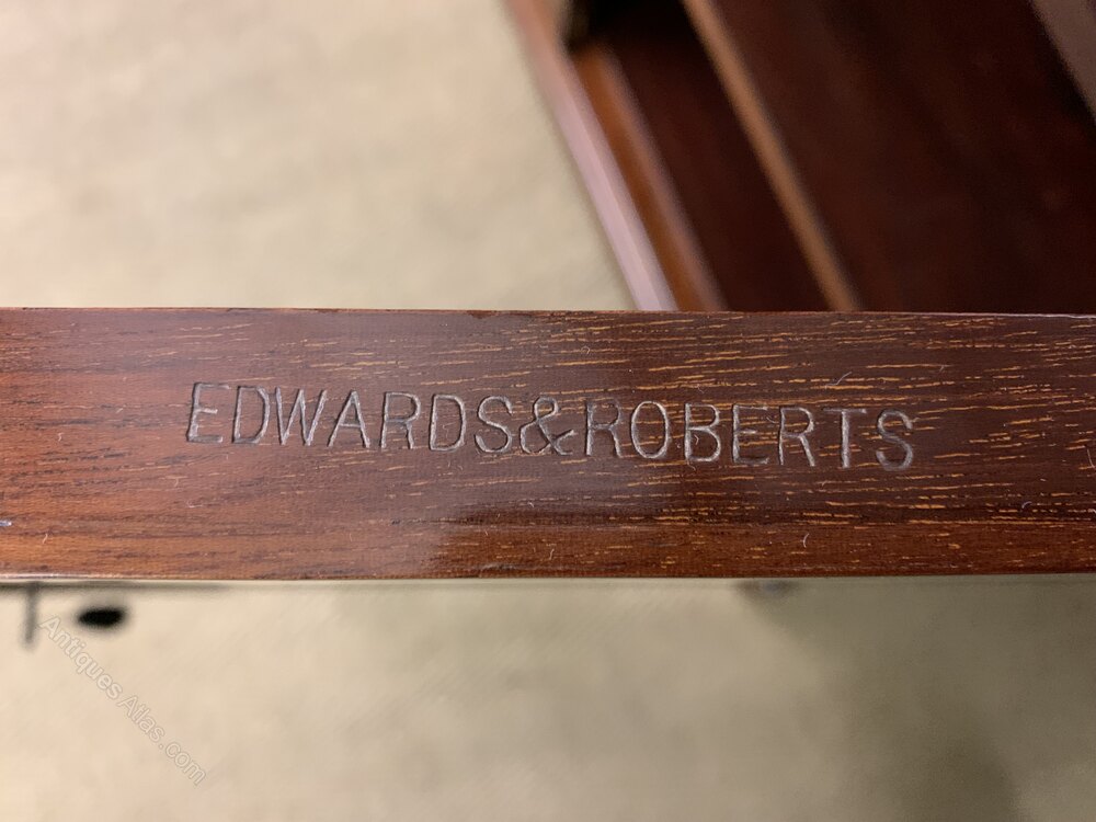 Edwards & Roberts was founded in 1845, and had premises at 21 Wardour Street London. By 1892 they occupied more than a dozen buildings in Wardour Street, where they continued to trade until the end of the century. They became one of the leading London cabinet makers and retailers working in a variety of styles, both modern and revivalist. Their business also involved retailing, adapting and restoring the finest antique furniture and there are many examples of their earlier furniture with later embellishments bearing their stamp. Edwards & Roberts specialized in marquetry, inlay and ormolu.