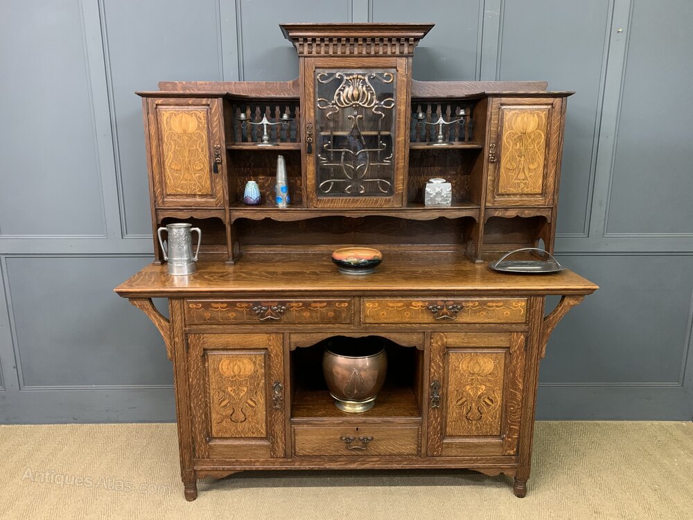 Shapland & Petter antiques range from simple rustic Arts & Crafts furniture to intricate antique marquetry furniture, embellished with the fluid organic designs of the Art Nouveau movement. Their antique cabinets often made use of finely detailed lead glass panels and delicate fruitwood inlays however, many of these intricately crafted pieces were mass-produced standards.