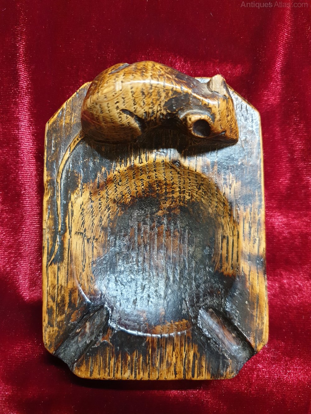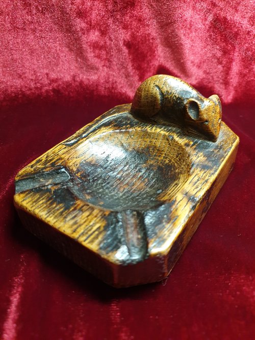 Vintage Robert "Mouseman" Thompson hand carved oak ashtray,c1920/30's.In good but used condition,there are scorch marks from cigarette use over time.Measures - 10cm x 7cm x 4cm.DateEarly 20th Century