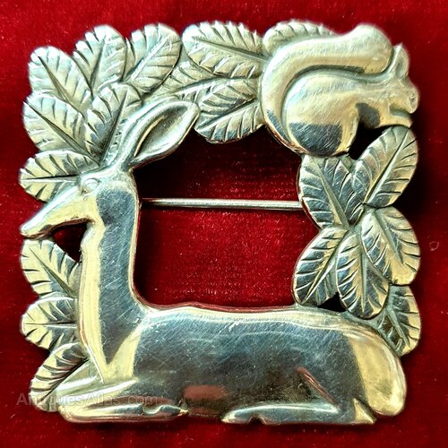 Vintage Georg Jensen Silver Deer & Squirrel Brooch