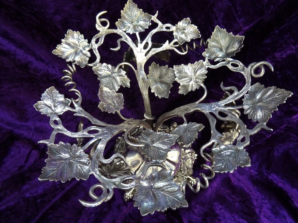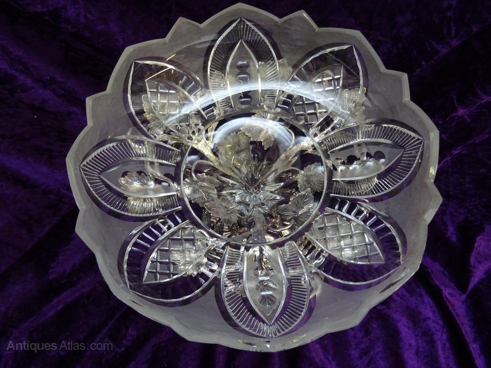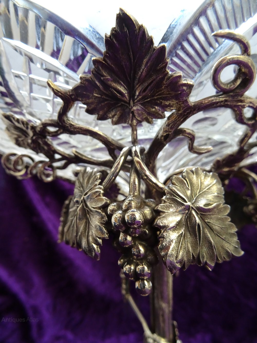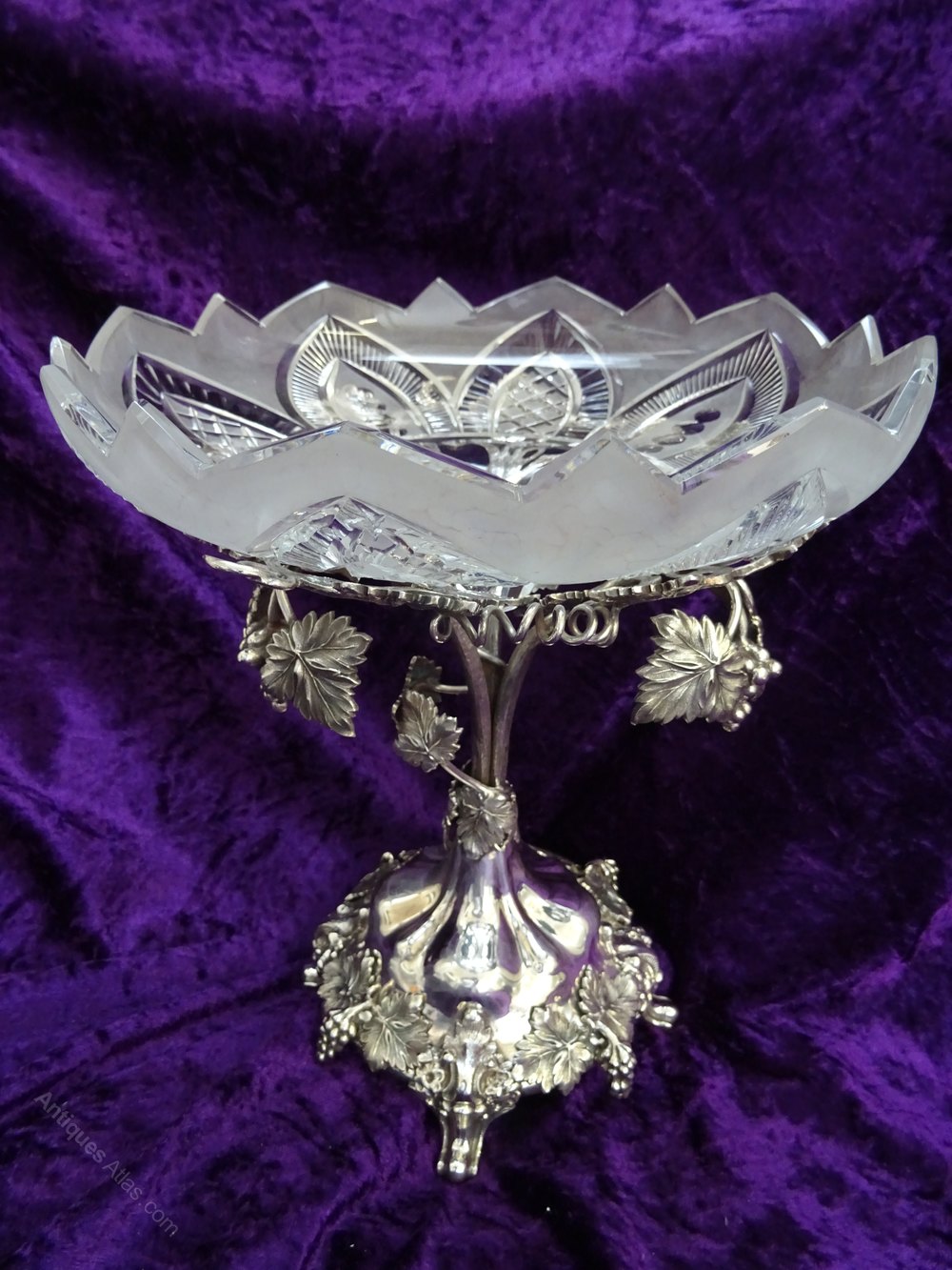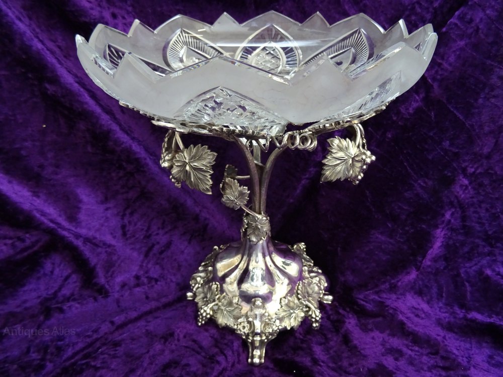 Early 20th century silver plated & glass tazza,c1900's.With grapevine design and leaves supporting a cut & frosted glass bowl.In superb condition,no maker's mark & no damage or restoration.Height - 10inches.Diameter of base - 6inches. Diameter of bowl - 9inches.Returns only accepted if item is returned within 14 days and in the condition it was sent.DateEarly 20th Century