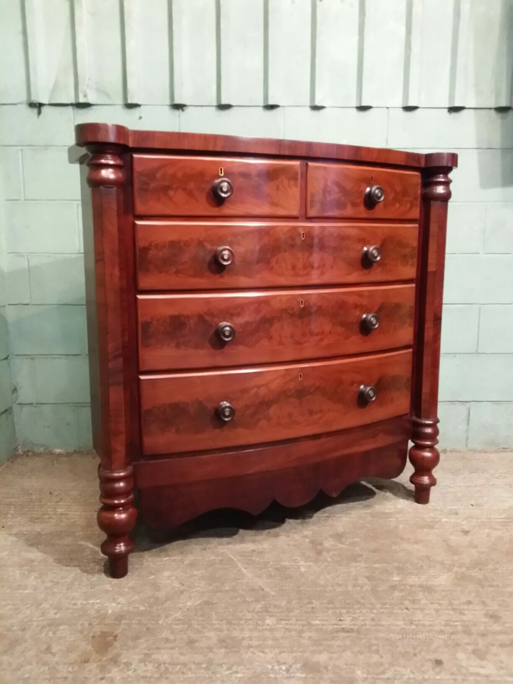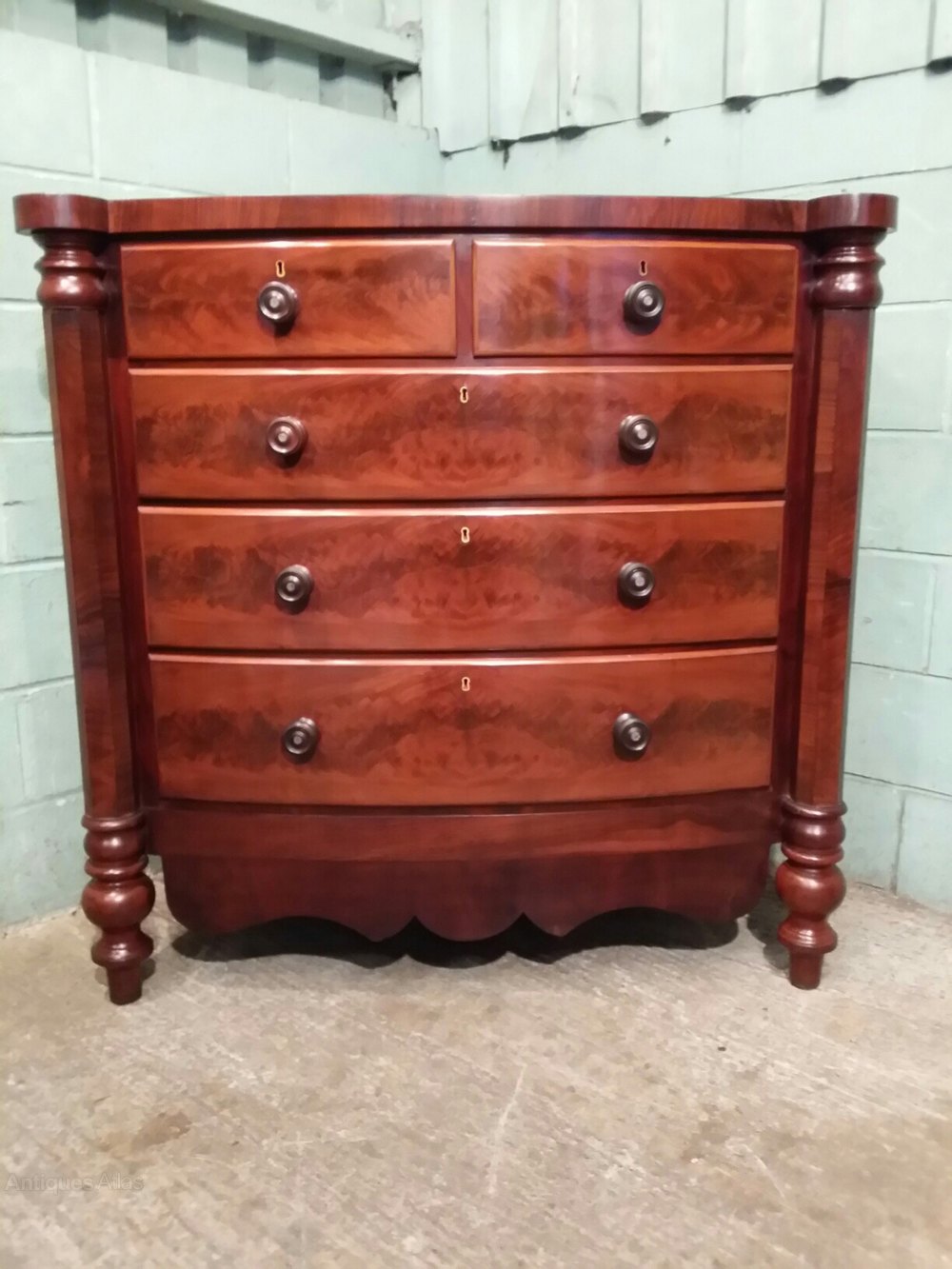 Antique Victorian Mahogany Bow Front Chest Drawers