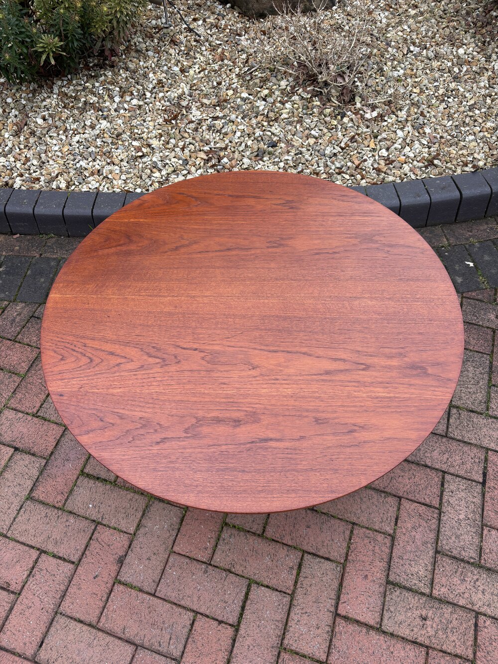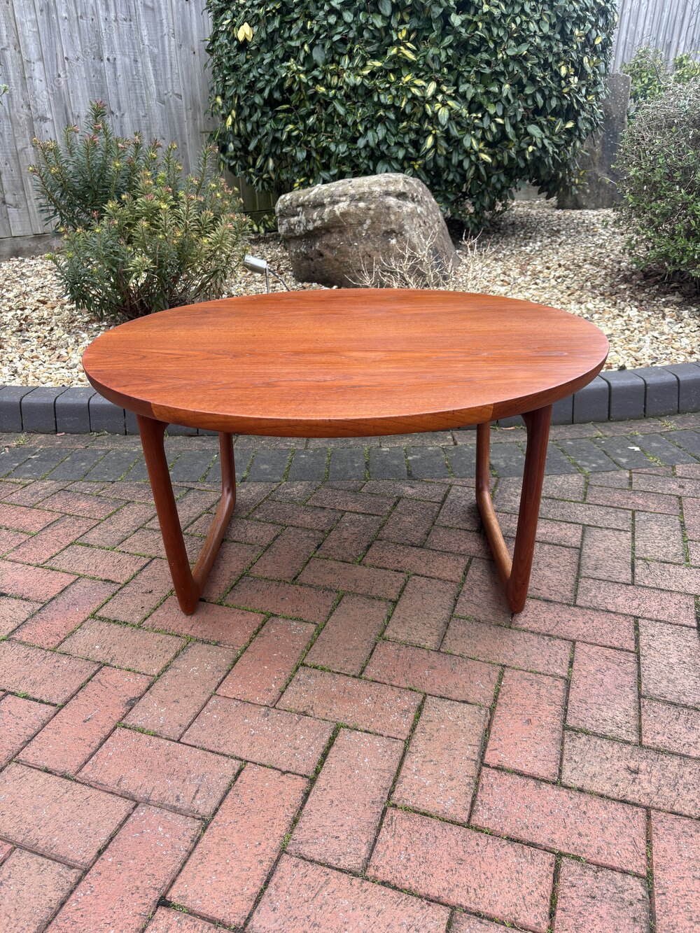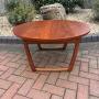 Danish mid century teak coffee table made in Denmark for France & Son c1960's designed by Peter Hvidt and Orla Molgaard-Nielsen. The table has a circular top, makers label to the underside, and stands on sled legs which gives a stylish sculpted look.In good overall condition, no breaks or repairs.