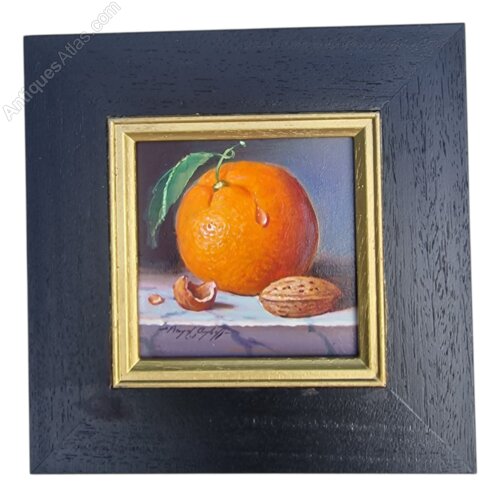 In GeneralA stunning still life original oil painting on board by celebrated, four-time Royal Academy of Arts exhibitor, British Artist, Raymond Campbell. The painting is known as "Orange and Nut".