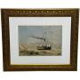 The watercolour is unsigned, with no initials or monogram visible. Identification rests on stylistic analysis and, crucially, on the attached institutional correspondence. This is typical for many British School marine works of the period.
