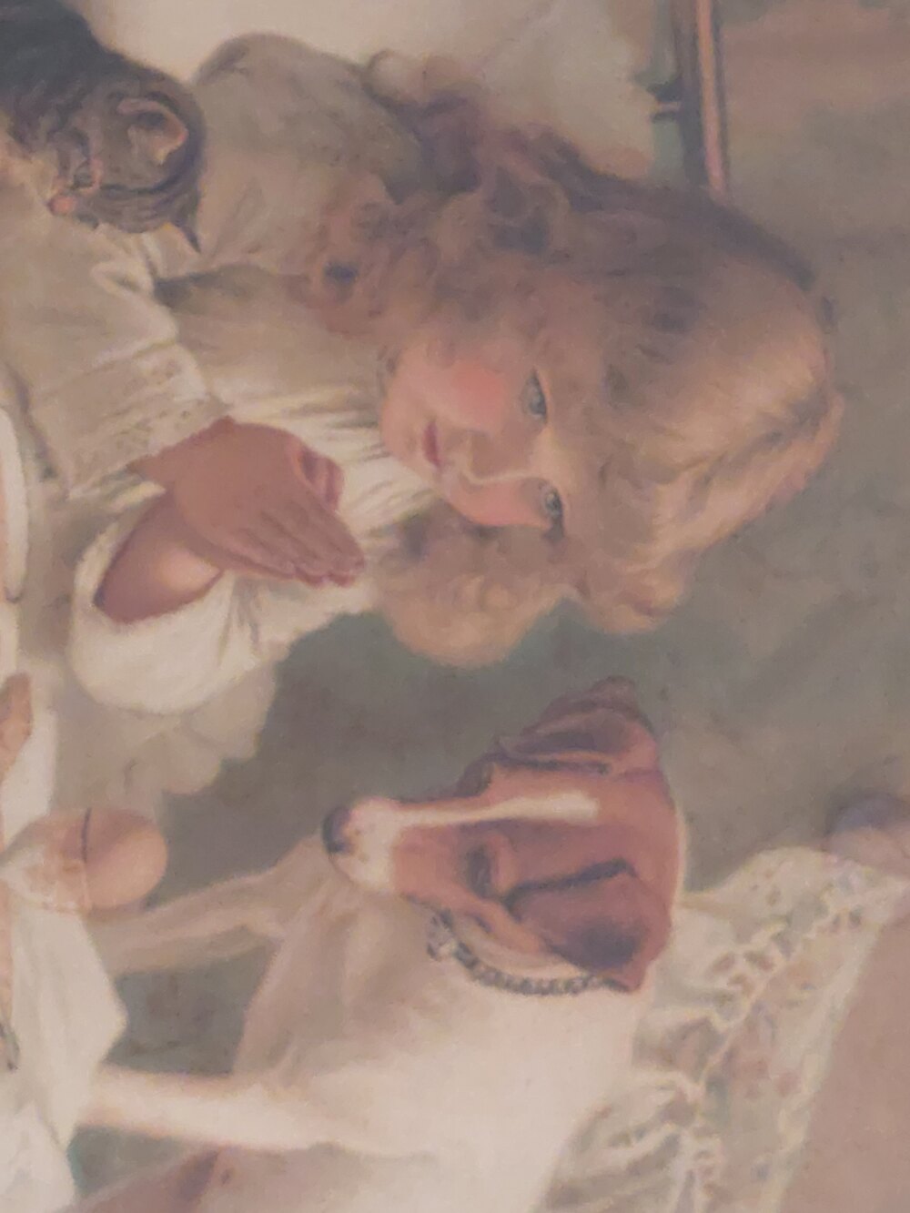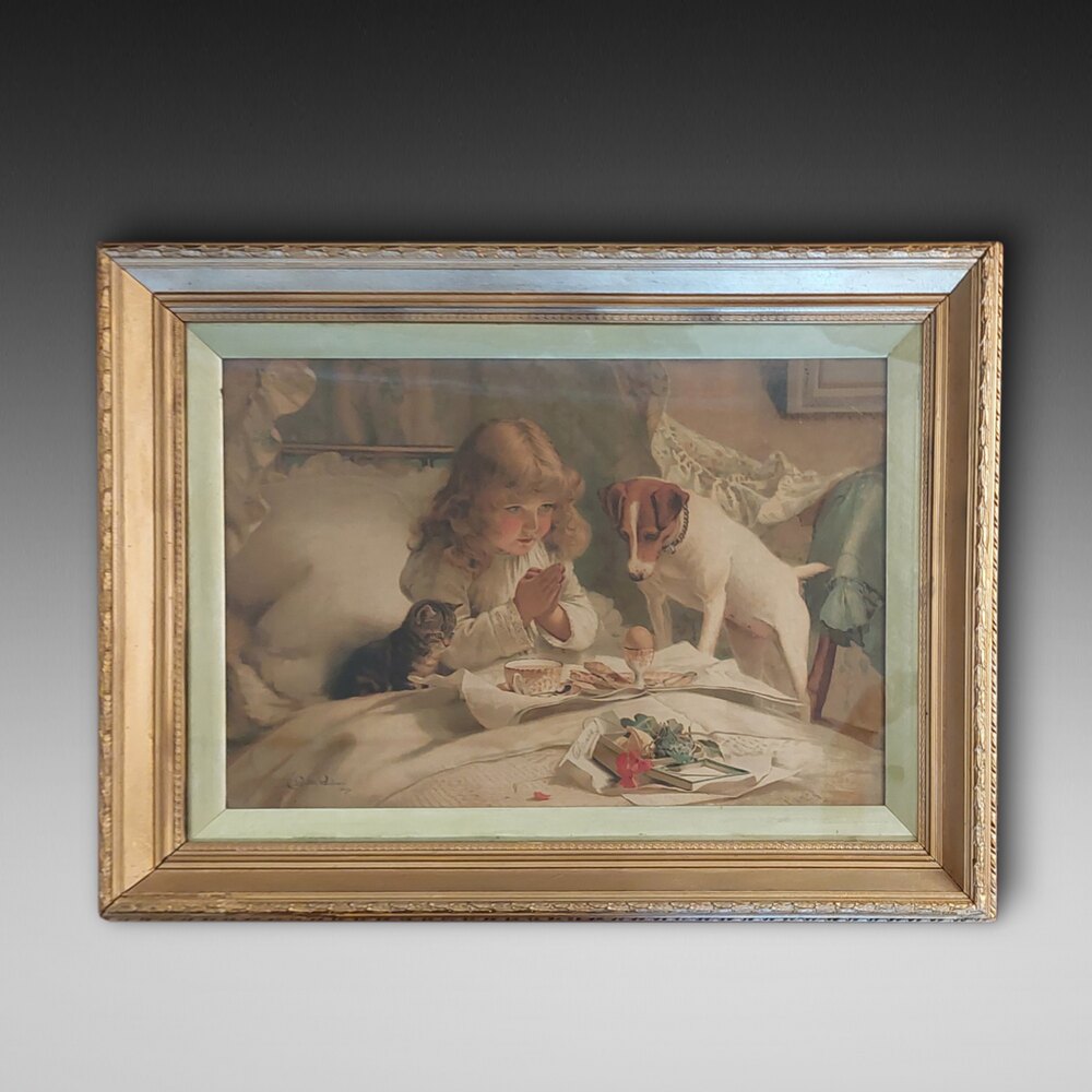 Charles Burton Barber, a Pear's advertising print, 'Suspense', signed and dated 1894 lower left, framed plus one Pears print of children having a picnic. 34"w x 26"h -Original sold for $442,000 at Christies New York