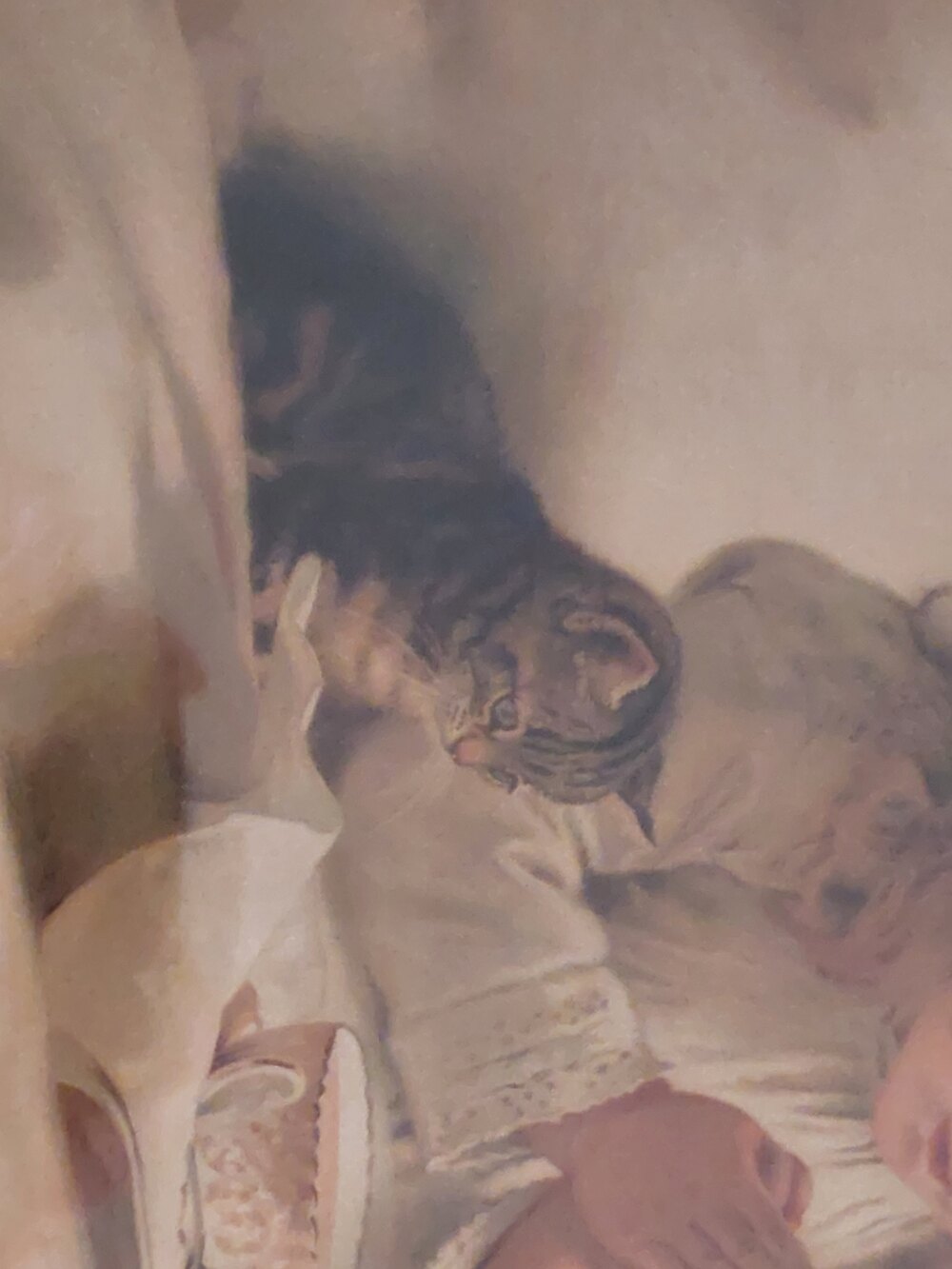 The present picture, painted in 1894 and apparently never exhibited, is very characteristic in its sentimental subject and humour. Another painting, Friend or Foe?, in which a little girl, her dog and kitten, look apprehensively at a frog, seems to show the same models and must be more or less contemporary (see Furniss, op.cit,pl.39).