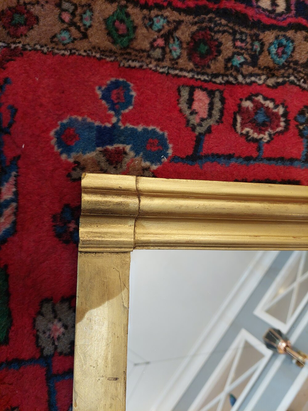 Victorian Giltwood & Gesso Overmantel Mirror with moulded frame and Rococo Style Pediment - 29.5"w x 56"h x 5"dDateVictorian