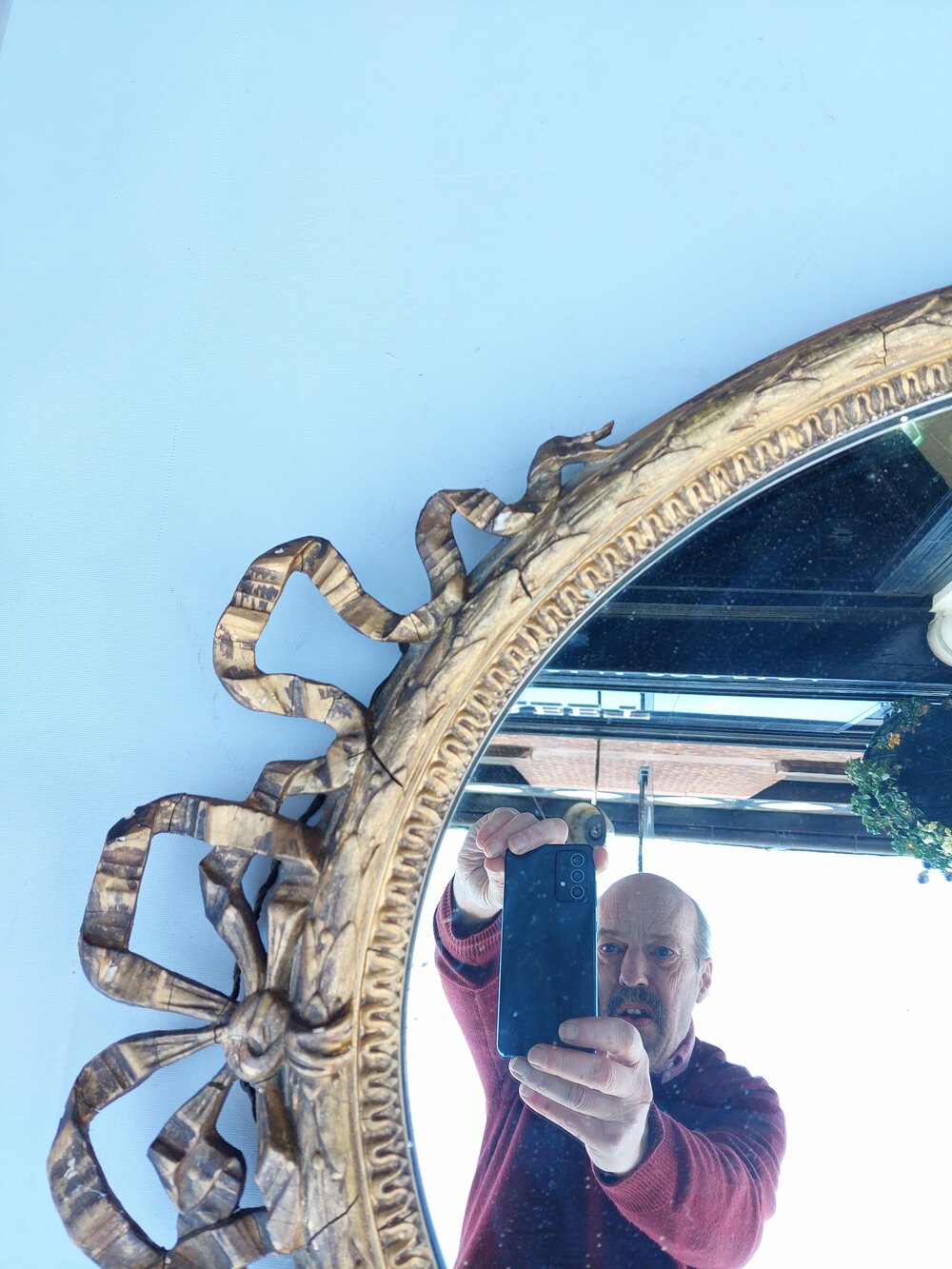 Mid 19thC Louis XVI-style Oval Giltwood Wall Mirro