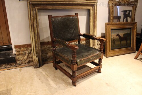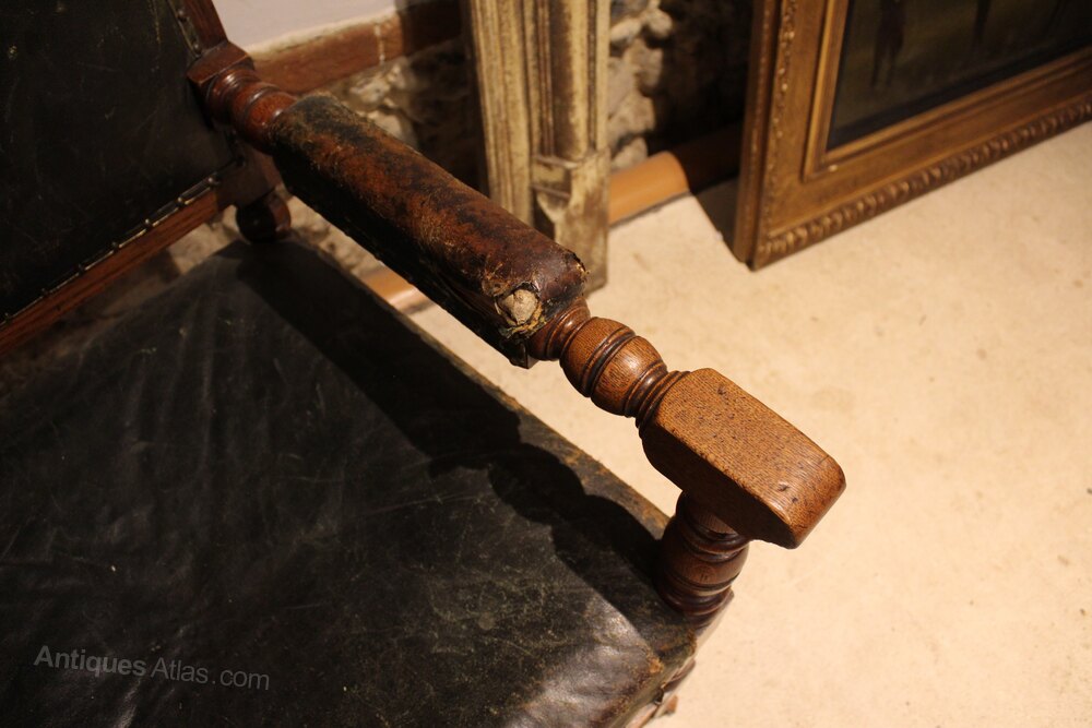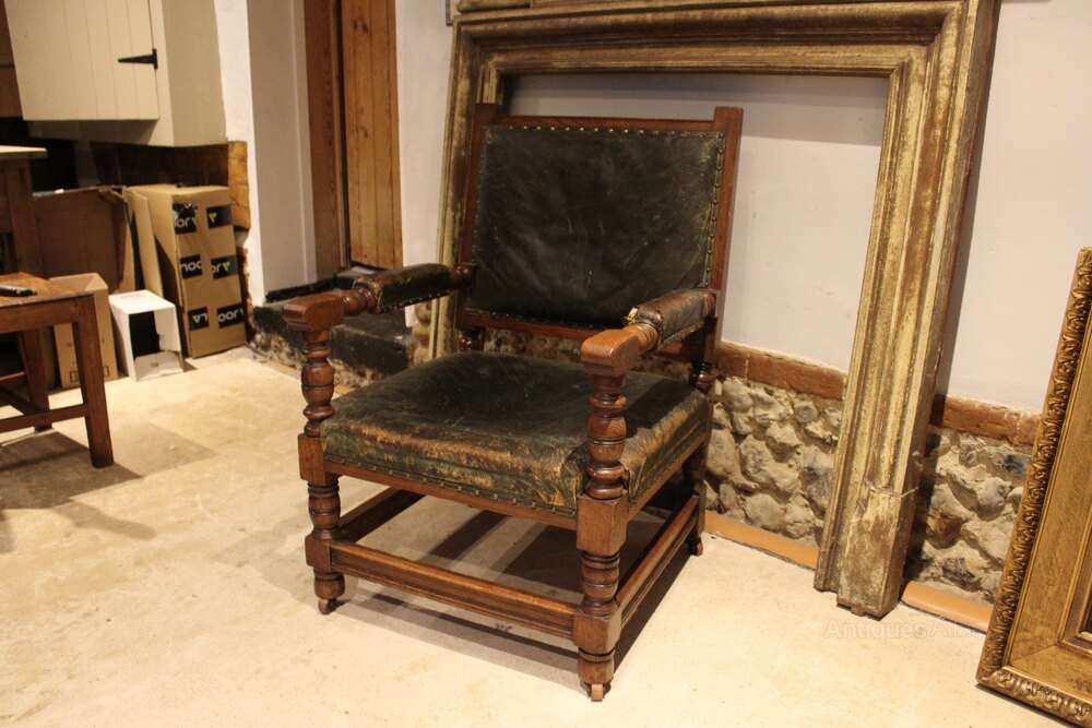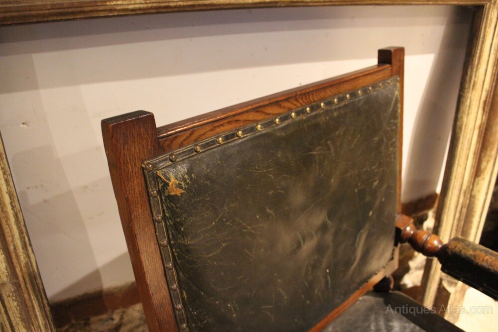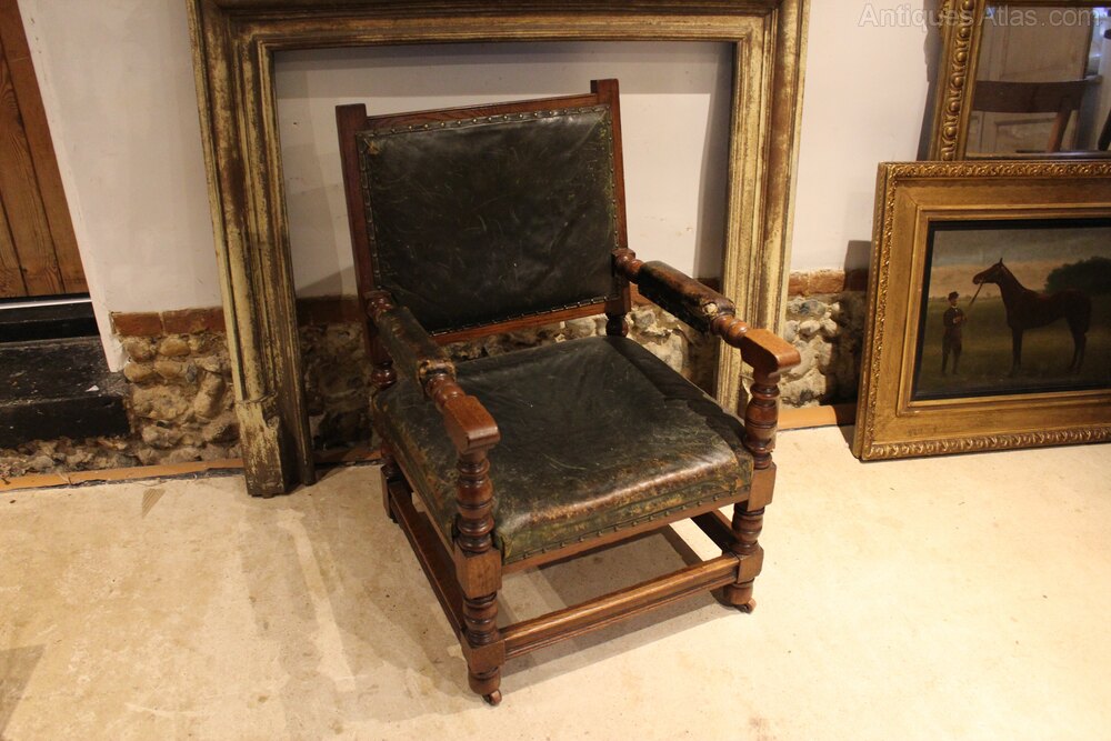 Chair Victorian Oak leather library club armchair