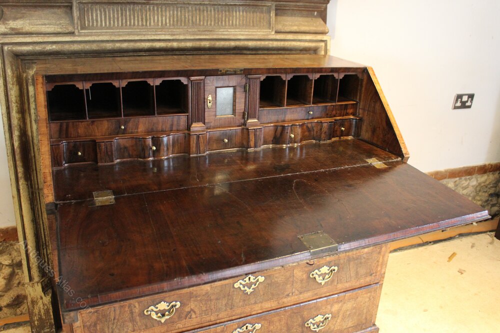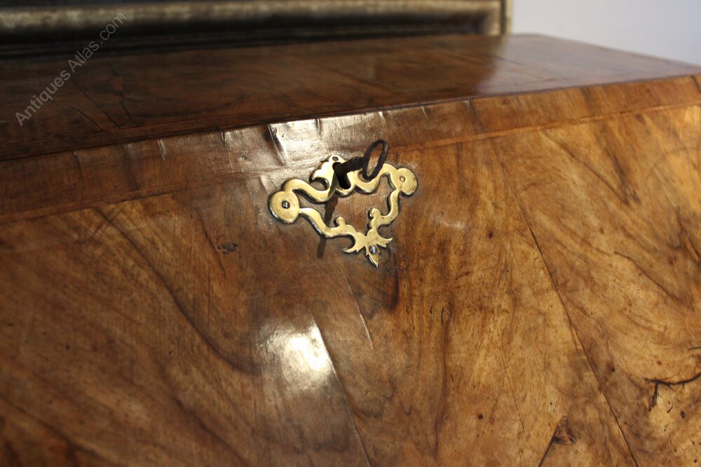 Here we have an absolutely stunning George II Walnut bureau c1740. This is the best of its type and the best we have ever had through our hands. Not only it is of the finest quality but is also the best colour and patina that can be gained from Walnut of this period. The top has super grain and colour and the fall front also has the best toffee caramel colour. The original lock and key is in place and the fall front opens to reveal a stunning fitted interior. There are secret drawers and complicated shaped fronts to the other drawers showing a true cabinet makers hand. The main drawers have herring bone inlay and retain their original brass handles and escutcheons. The drawers are all Oak lined with hand cut dove tail joints. The whole sits on original ogee bracket feet. A truly beautiful bureau in excellent retail condition ready to take pride of place in any home. The dimensions are approx 102 cm wide 104 cm high 50 cm deep.Buy from a trusted LAPADA dealer