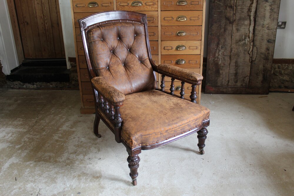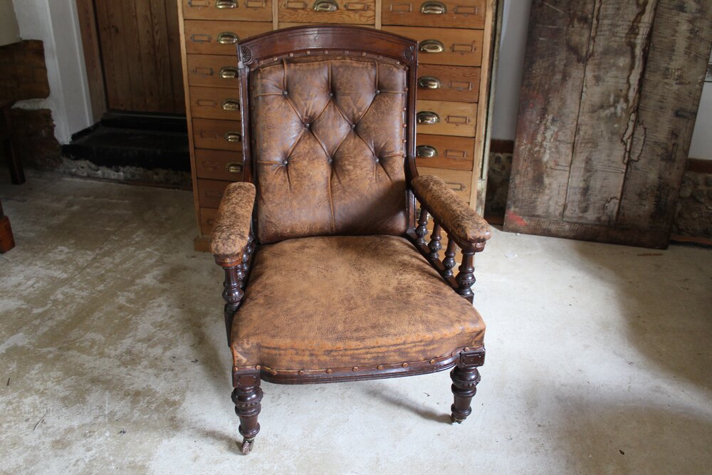 Chair wonderful Victorian leather armchair Walnut